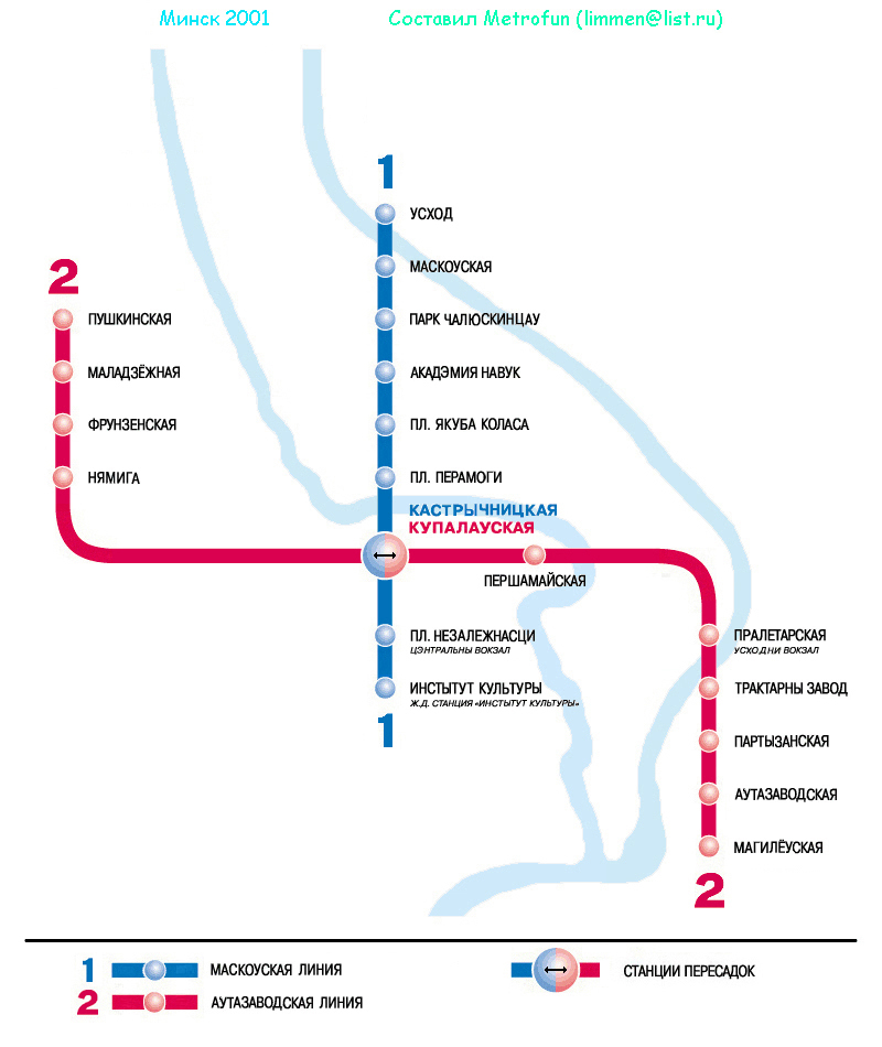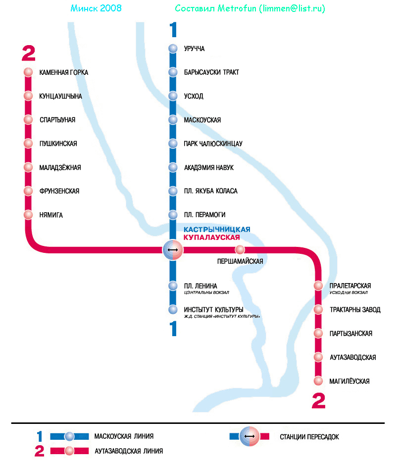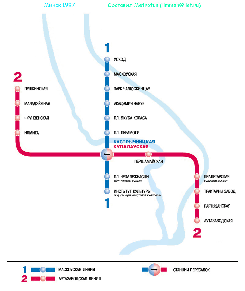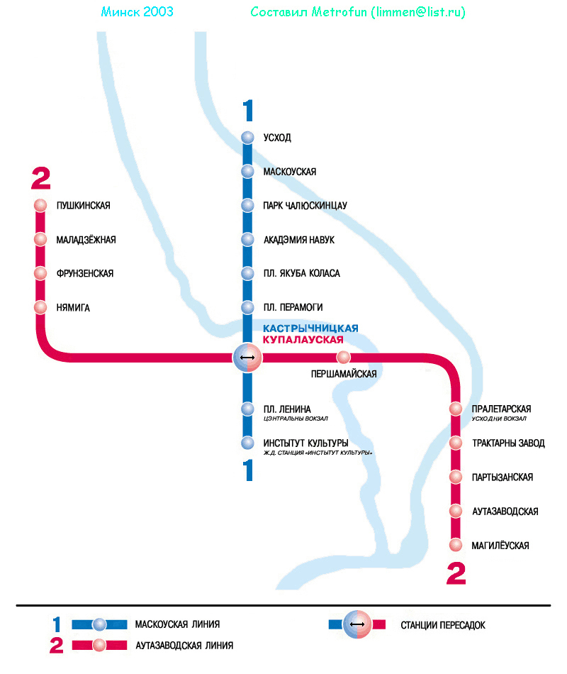 Сейчас линия 1 - синяя, это по лфициальной схеме Минска. Они (белорусы), вообще приколисты: у них на половине схем так, а на другой половине сяк, так что я решил отталкиваться от нынешней официальной расцветовки! Но, варианты, безусловно есть!