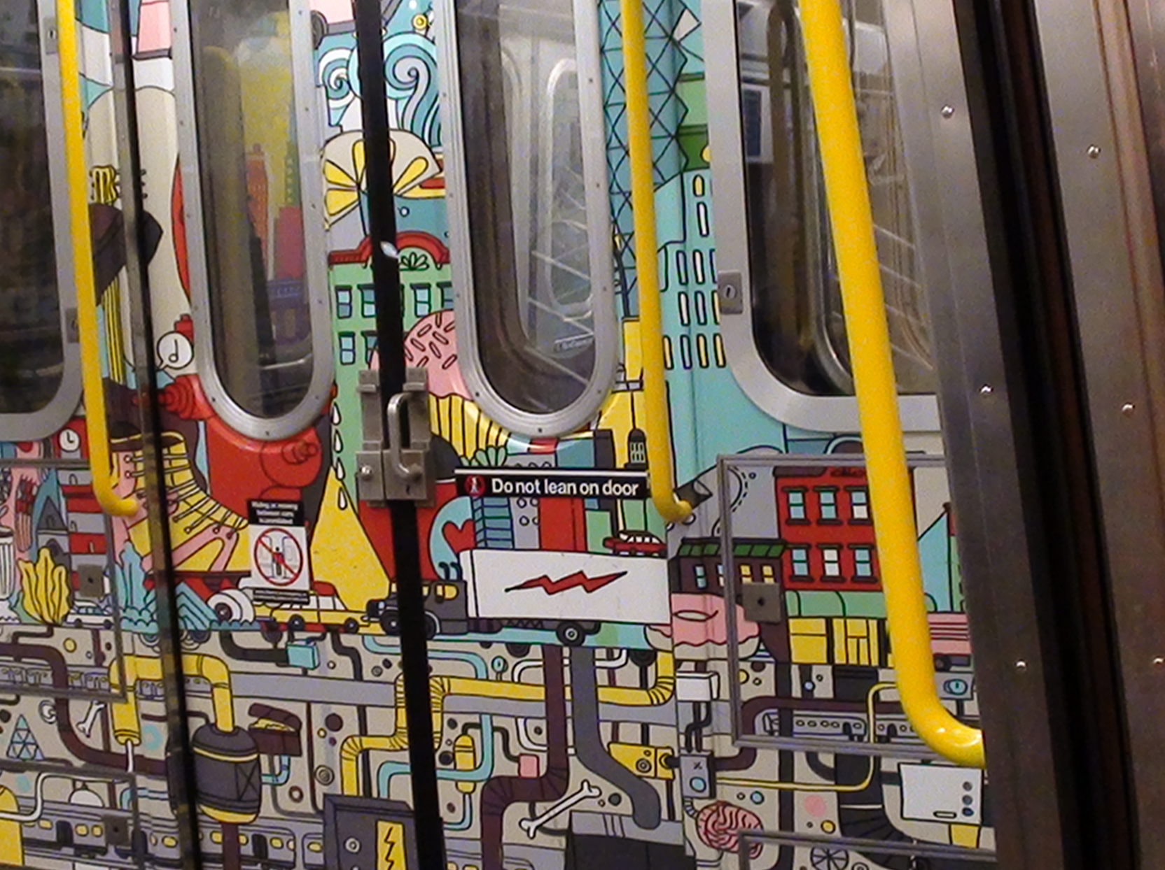 В Нью-Йорке замечен обклеенный состав внутри, что является редкостью для данного города.