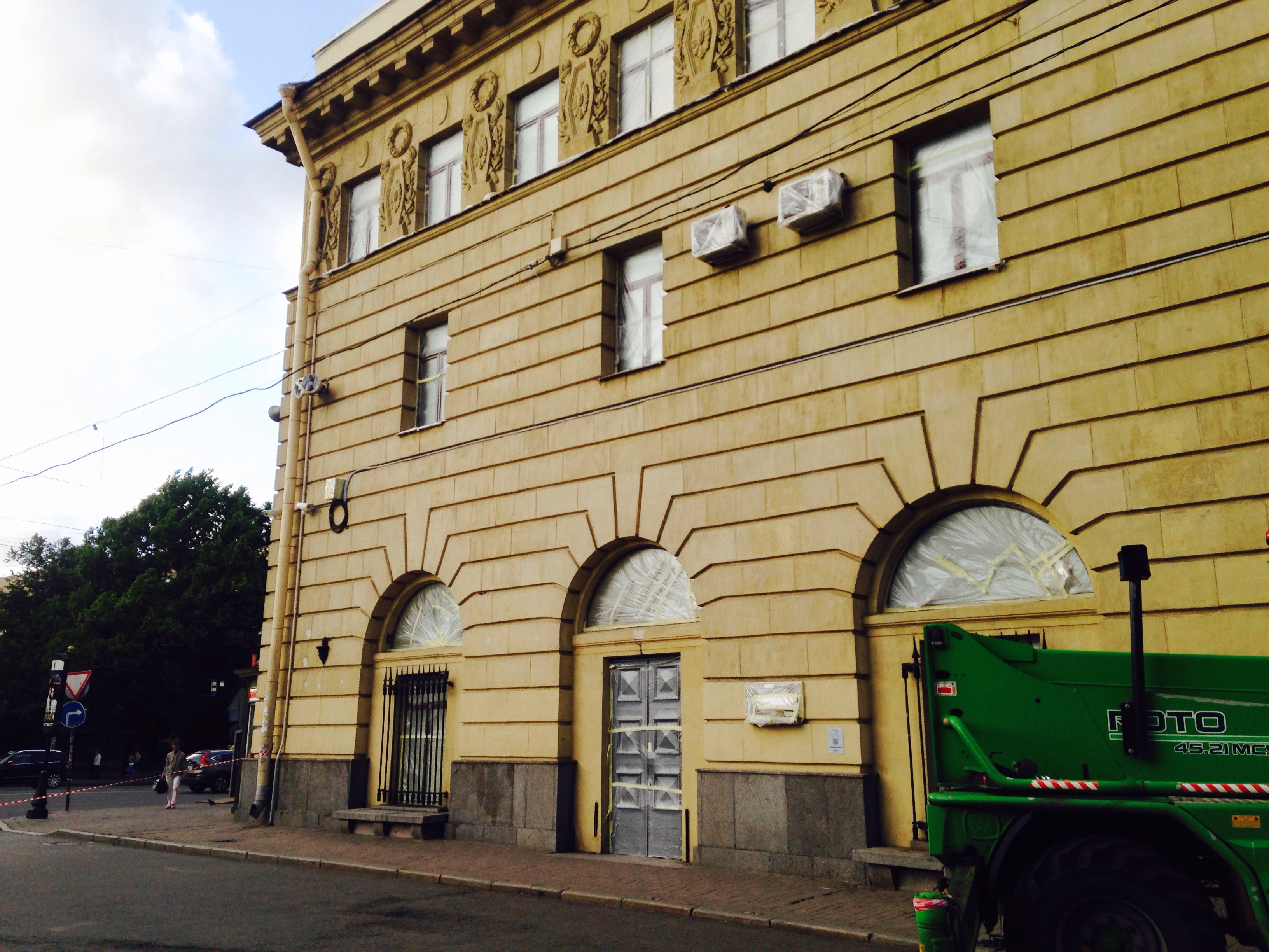 Вчера вечером докрасили фасад здания.