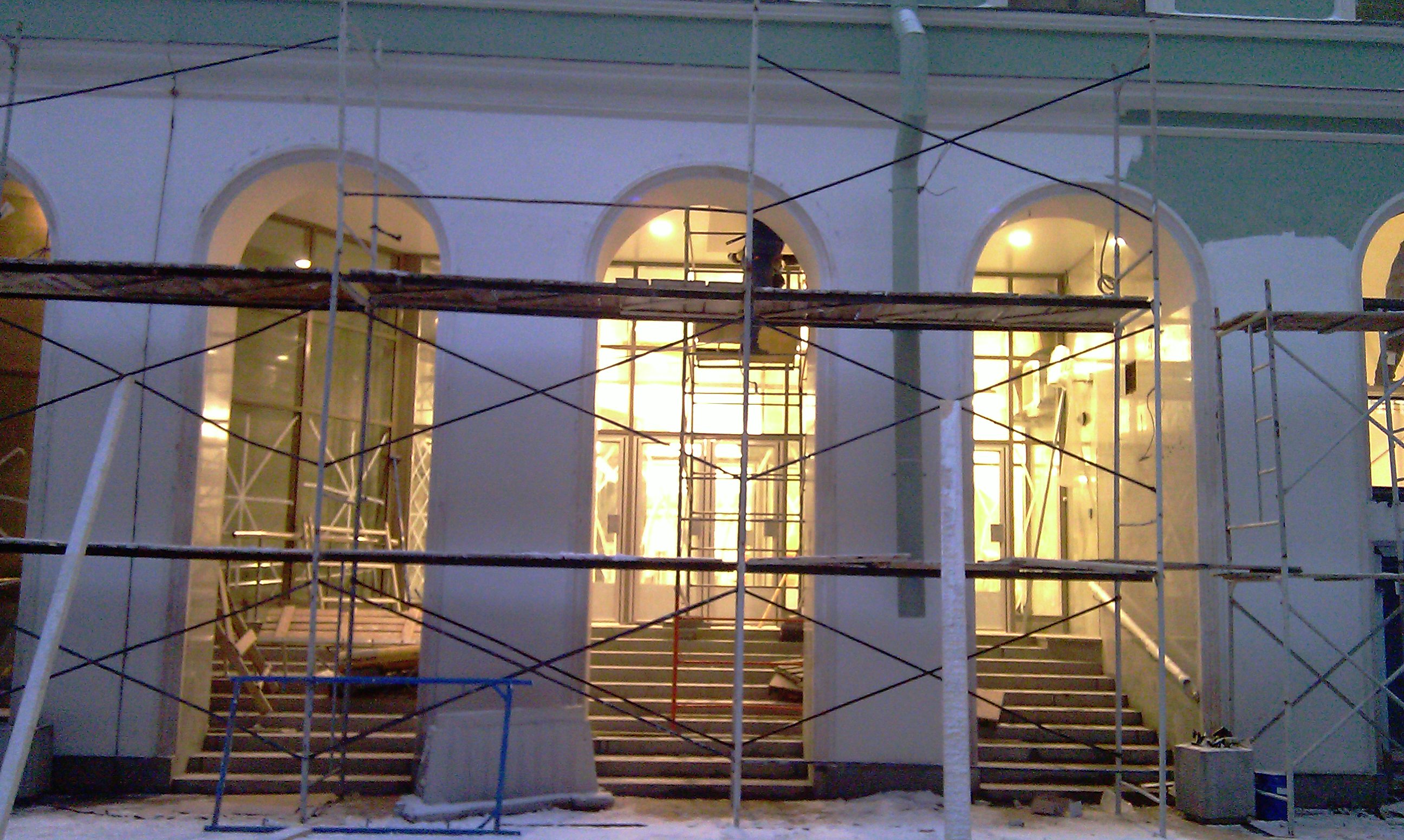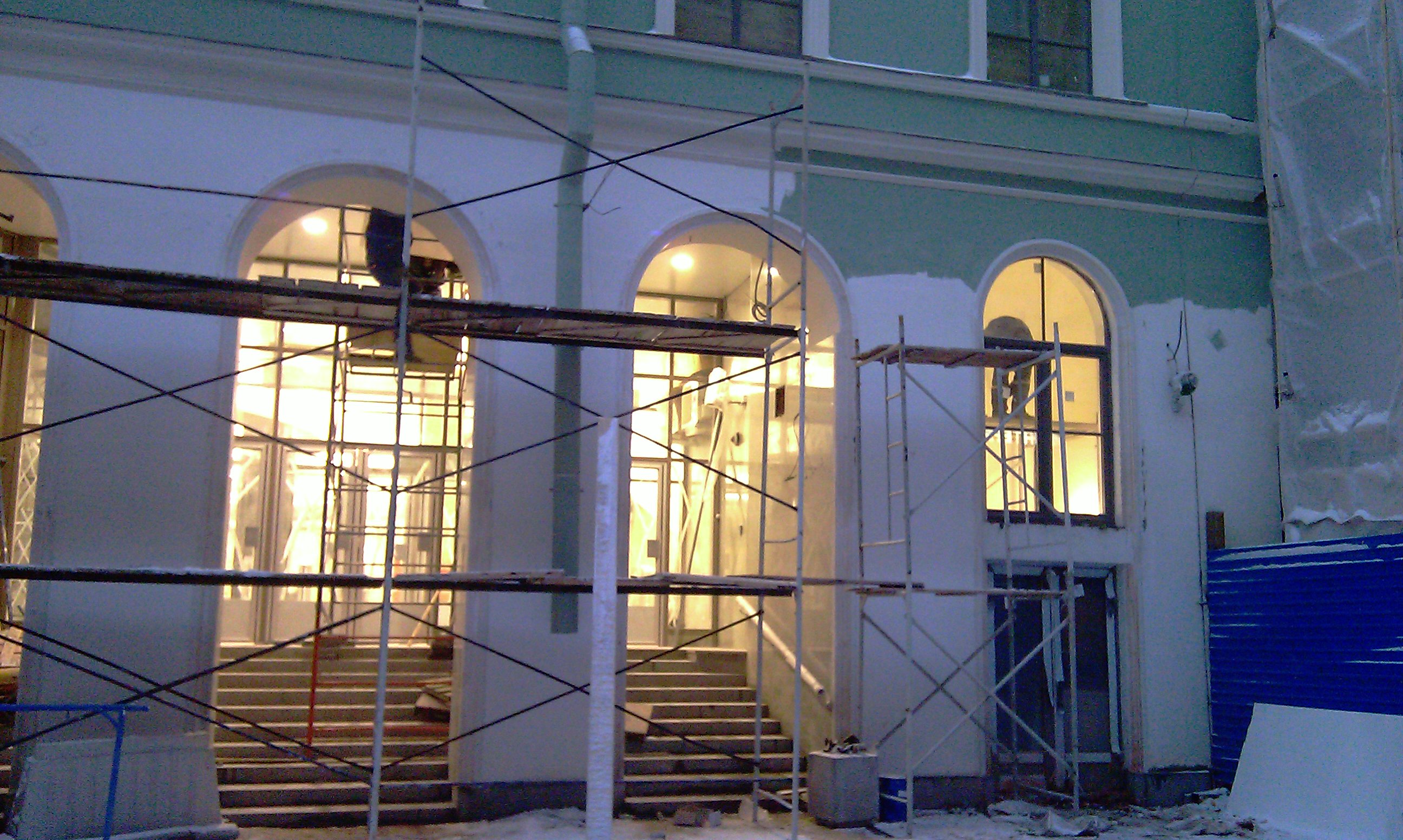 А что на центральном фасаде, а также со стороны Малой Морской?.. Что там под плёнкой?..