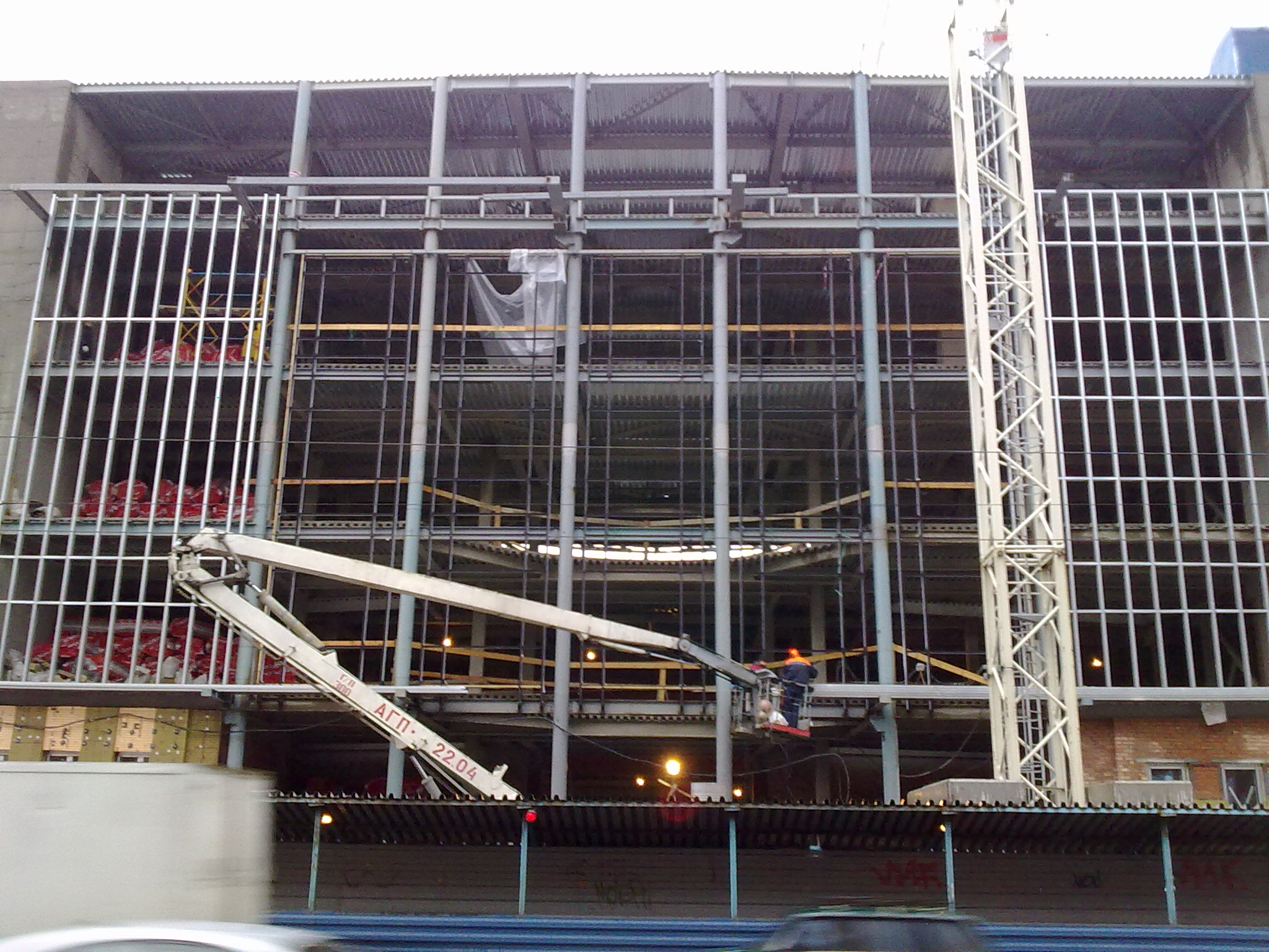 Ну а тем временем в ступенях собрался один эскалатор 100% и собирается второй (он же четвертый). Подконструкция водоотводных зонтов практически собрана, на днях должны начать облицовку композитом уже. Фотки позже выложу.