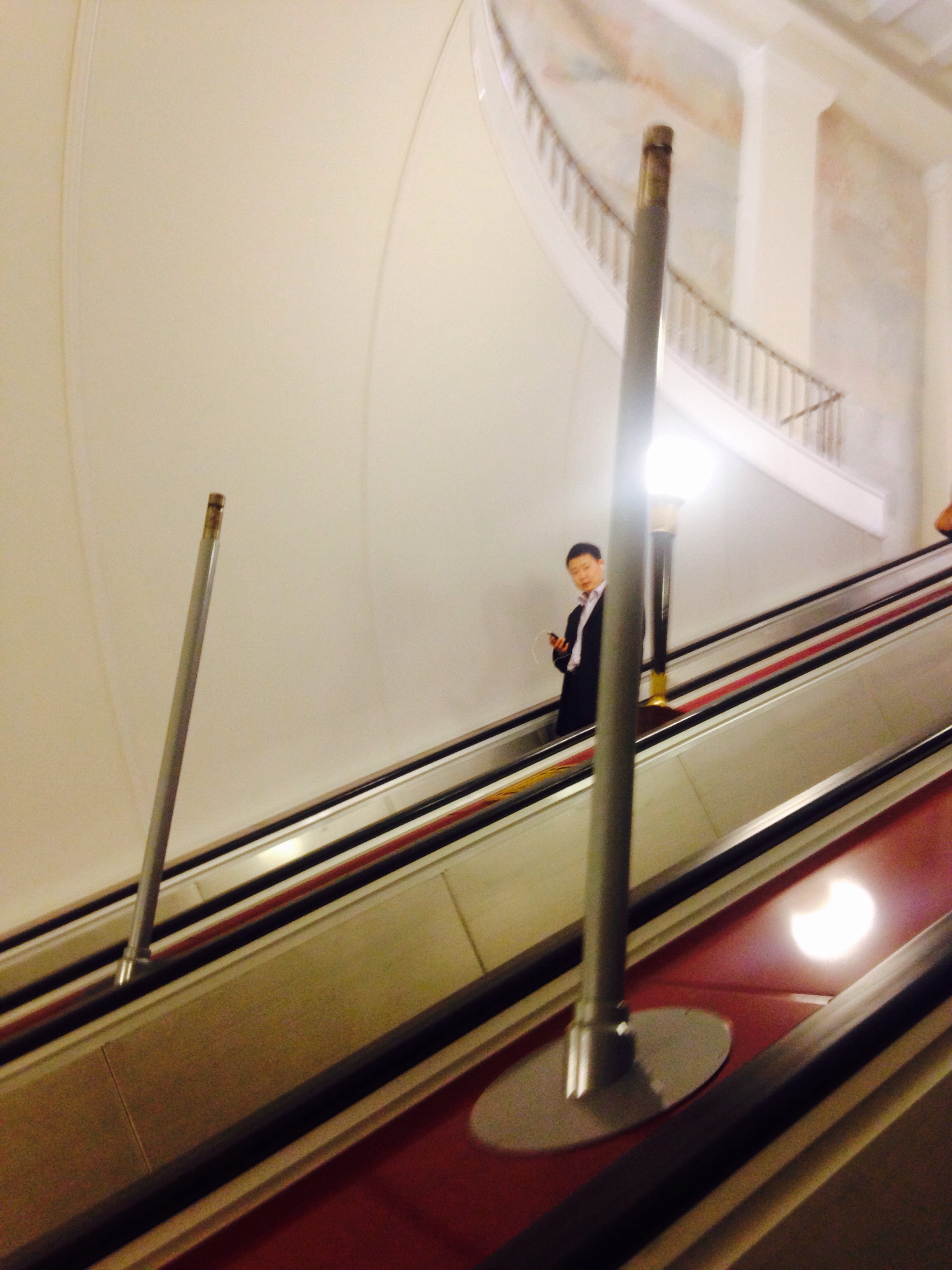 Эскалаторы порадовали, работают тихо и плавно. Но вот с цветовой гаммой какая-то ерунда, ни то, ни сё... Уж либо их нержавейки нужно было делать, либо коричневой краской красить всё...