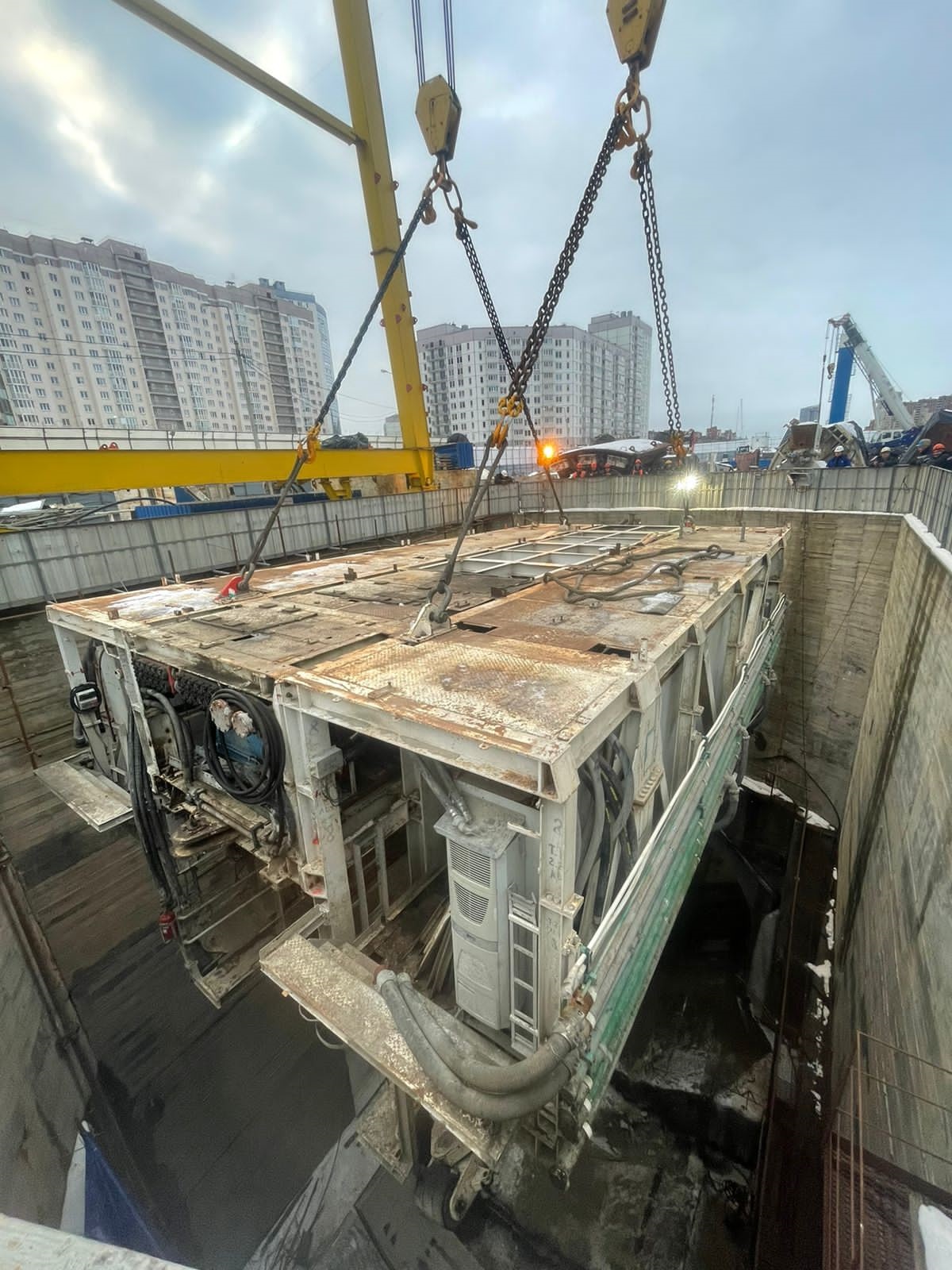 Вторая телега транспортного моста ТПМК Herrenknecht S-782 уже в стартовом котловане. Управление механизации рулит!