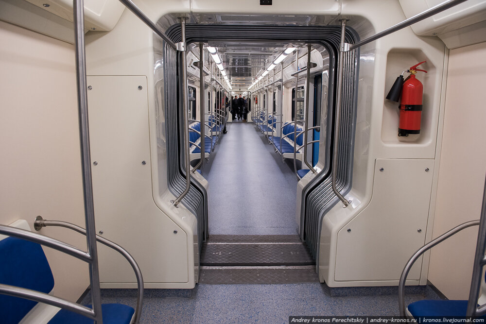 Что касается сквозного прохода, то им в столице не сказать, чтобы активно пользовались. Зайдут в вагоны, встанут и все. Никто через вагоны особо не ходит, так что и у нас они не нужны, как по мне. ДА и когда поезд поворачивает в туннеле это очень странно выглядит, когда предшествующий вагон чуть ли не целиком поворачивает в сторону.