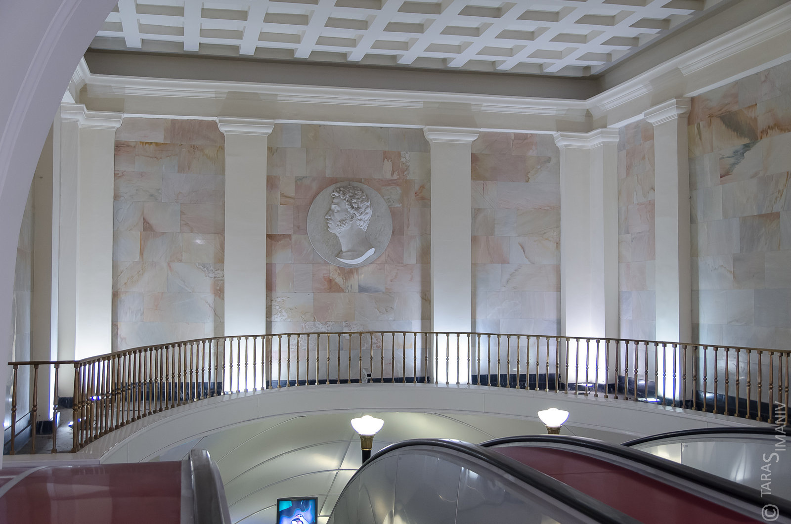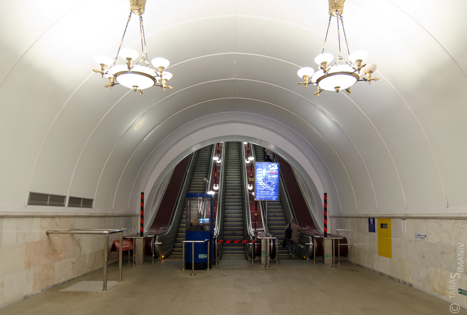 Обратите внимание на расстояние между крайним эскалатором и сводом - сомнения снимет как рукой. В 1955 году ставились эскалаторы с заметно бОльшей шириной балюстрады, чем ставят сейчас. Аналогично прошла замена и на Владимирской, да. Свод такого диаметра, собственно, для новых эскалаторов и не требуется.