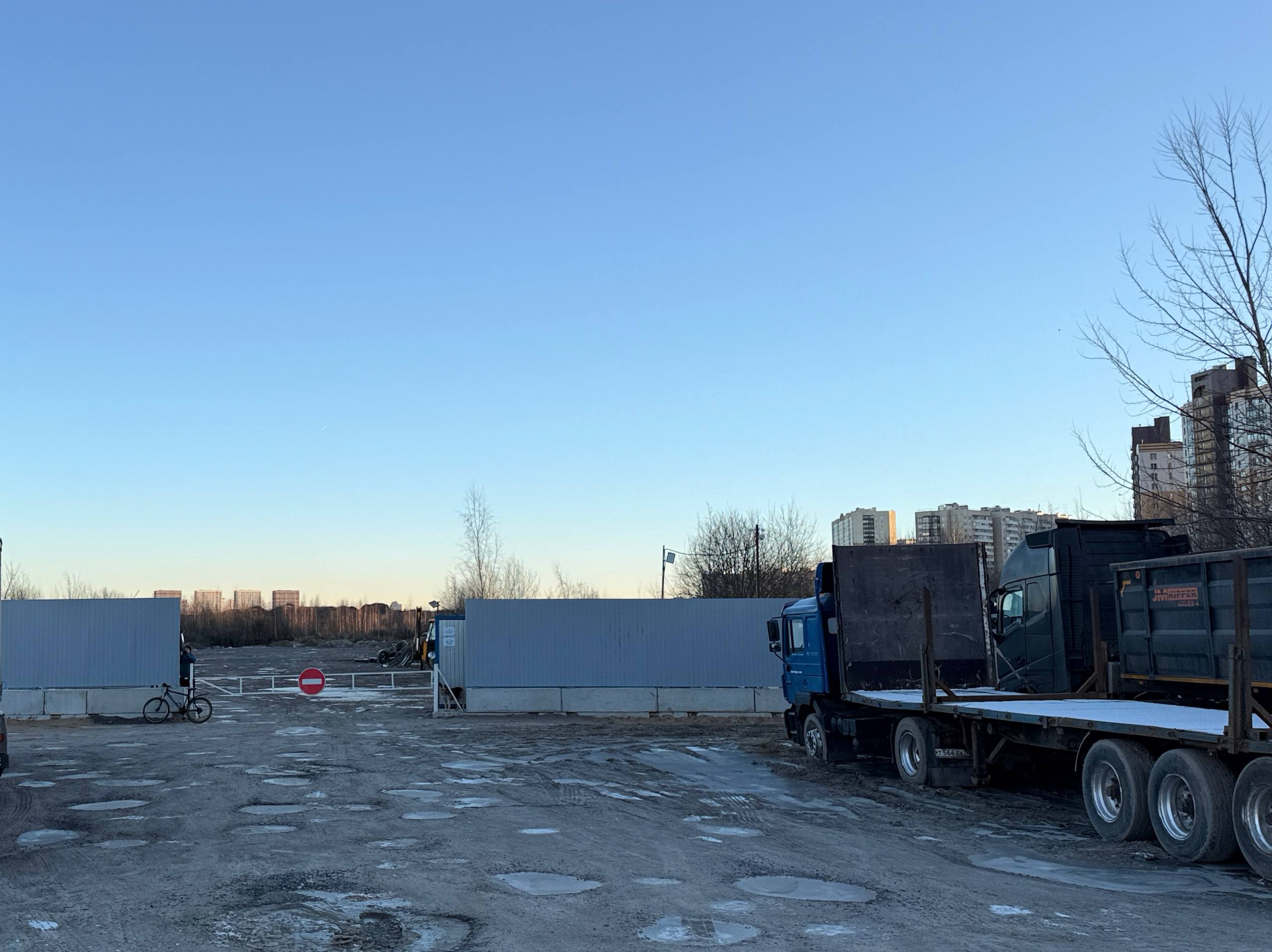 Судя по фото на предидущей странице для строительства временного забора сделали подъездные дороги и без проблем доставили материалы, в том числе тяжелые бетонные блоки. Вон там трактор катается, без проблем. Бетонные плиты и блоки в основание уложены.