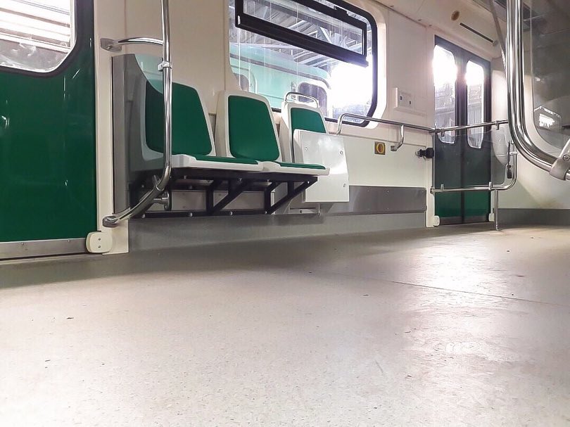 Вагоны нового зеленого состава оборудованы системой принудительной вентиляции, цифровыми информационные табло, а также специально выделенными местами для маломобильных групп населения в головных вагонах поезда.
