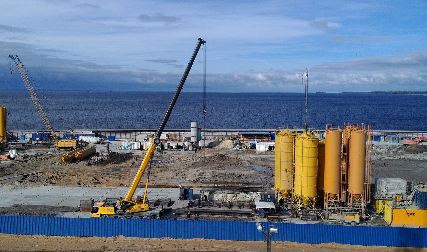 Создание искусственного земельного участка осуществлялось песчаным материалом. Все основные строительно-монтажные работы выполнены при помощи береговой (сухопутной) техники с подвозкой строительных материалов автотранспортом, за исключением намыва, который выполнен с использованием плавтехники.