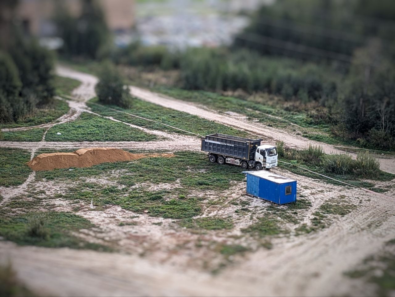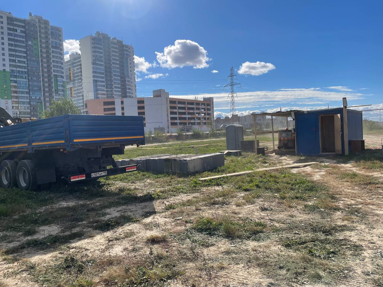 На площадку завозят первые строительные материалы: песок, для песочной подушки, а также бетонные блоки ограждения.
