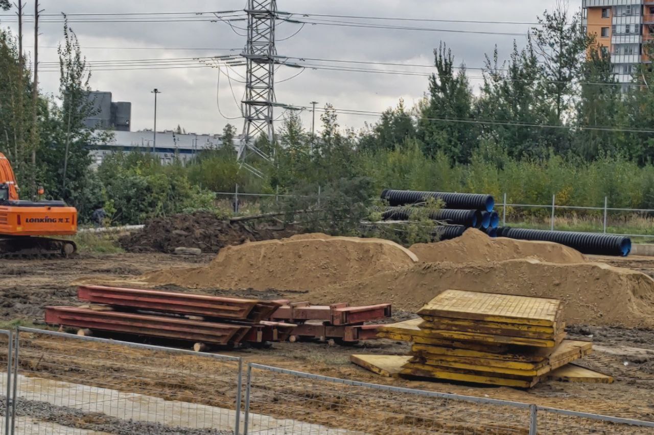 На демонтажном котловане за ст. «Каменка» Невско-Василеостровской линии метро продолжается обустройство площадки.