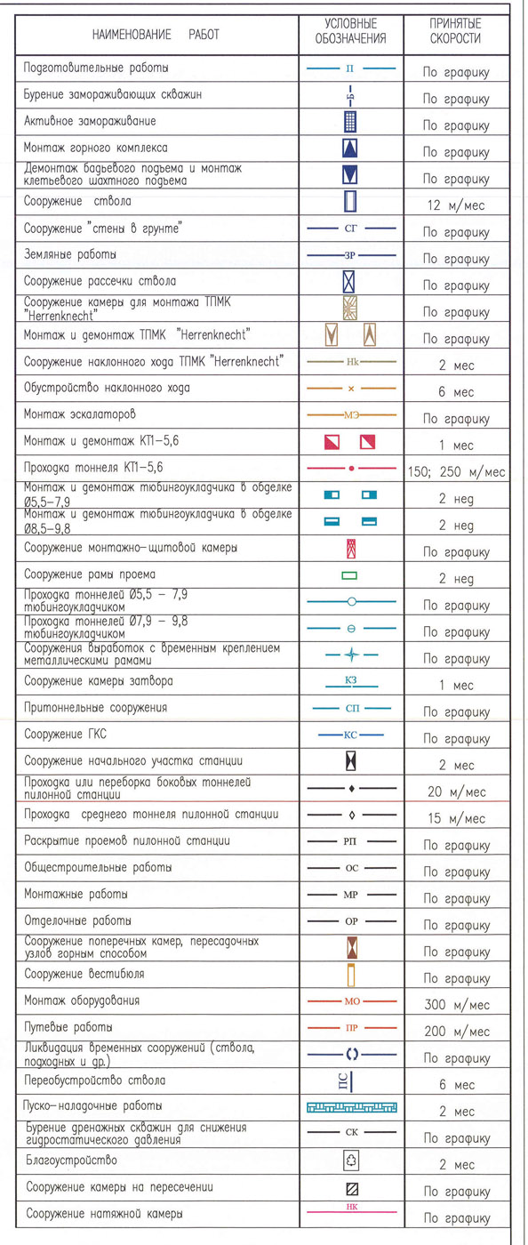 За первые 14 месяцев необходимо проделать очень большую работу: пройти рабочие стволы, построить горные комплексы, выполнить проходку руддворов и собрать в них тоннелепроходческие комплексы КТ1-5,6. Сооружение станций возможно только после вывода щитов на трассу. Следовательно, сроки вывода щитов на трассу будут определяющими.