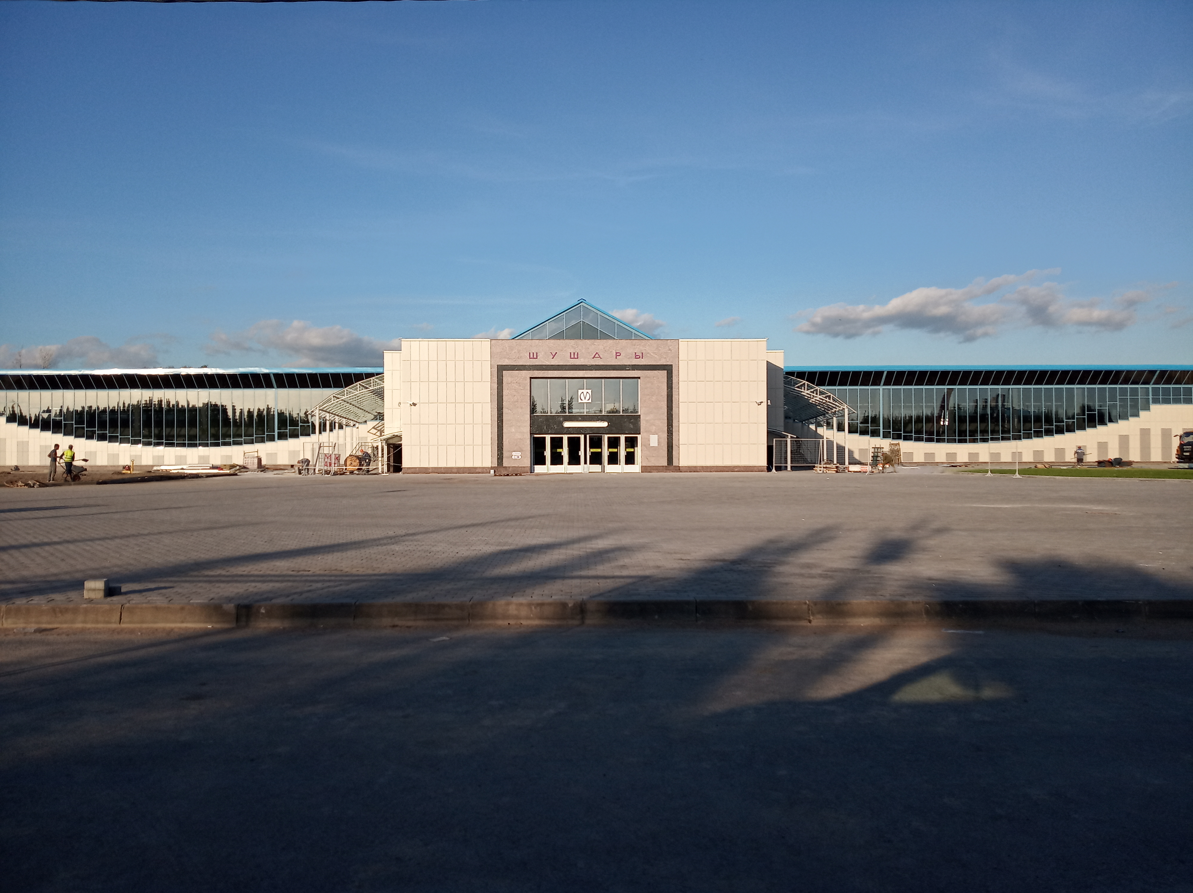 С такого ракурса, да ещё и с названием на фасаде, станция напоминает аэропорт в каком-нибудь не очень крупном городе. Не хватает только самолётов на переднем плане