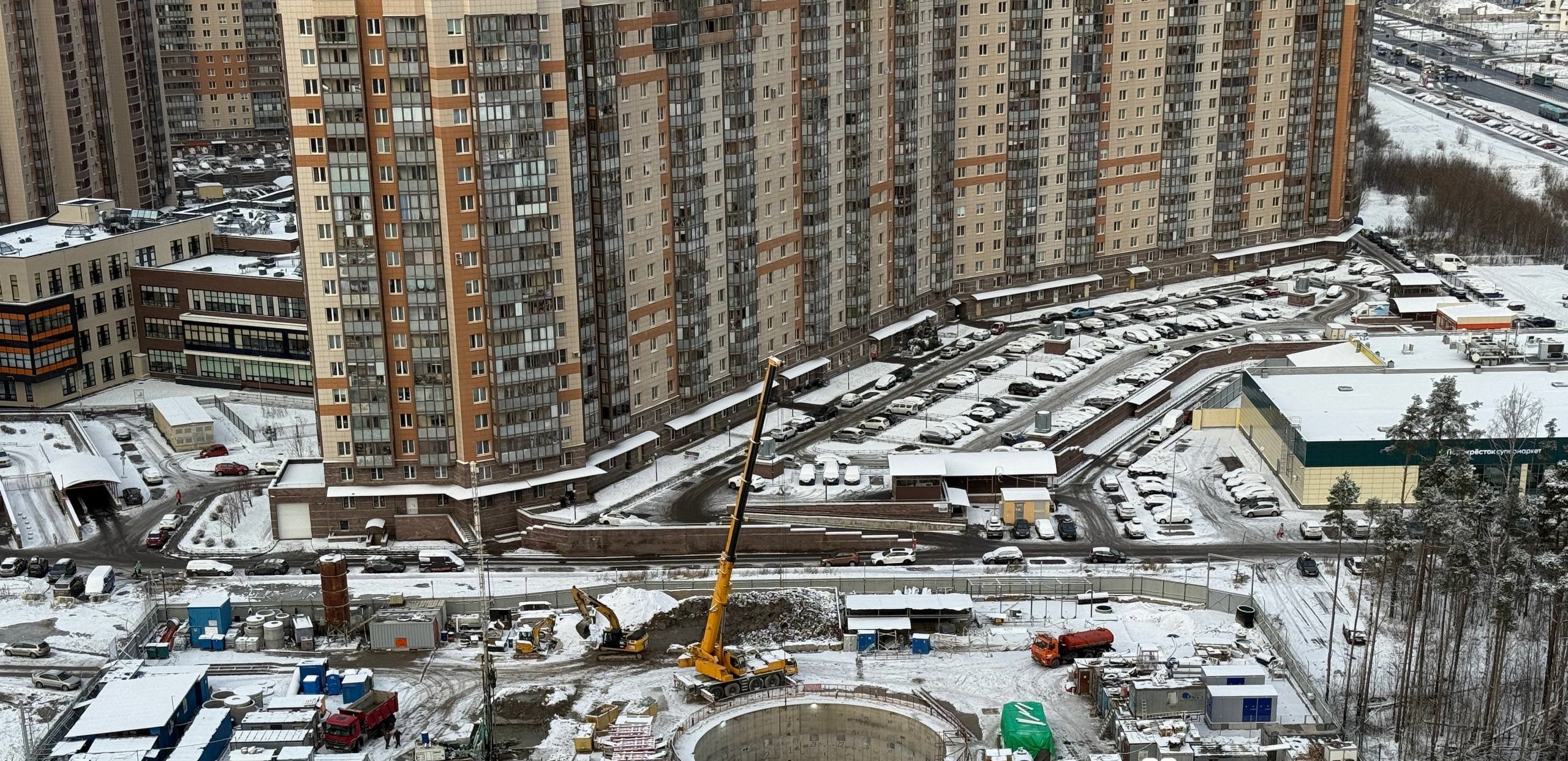 В Приморском районе Санкт-Петербурга продолжается сооружение демонтажного котлована и вентиляционной шахты №457 Невско-Василеостровской линии от станции «Беговая» до станции «Каменка» с промежуточной «Богатырской».