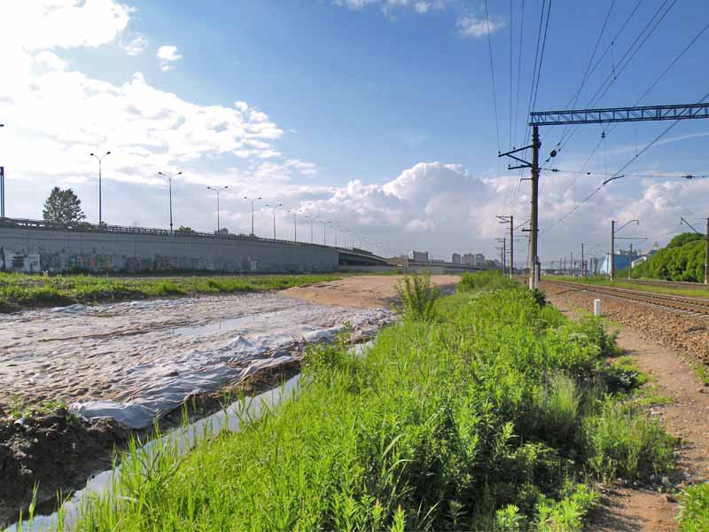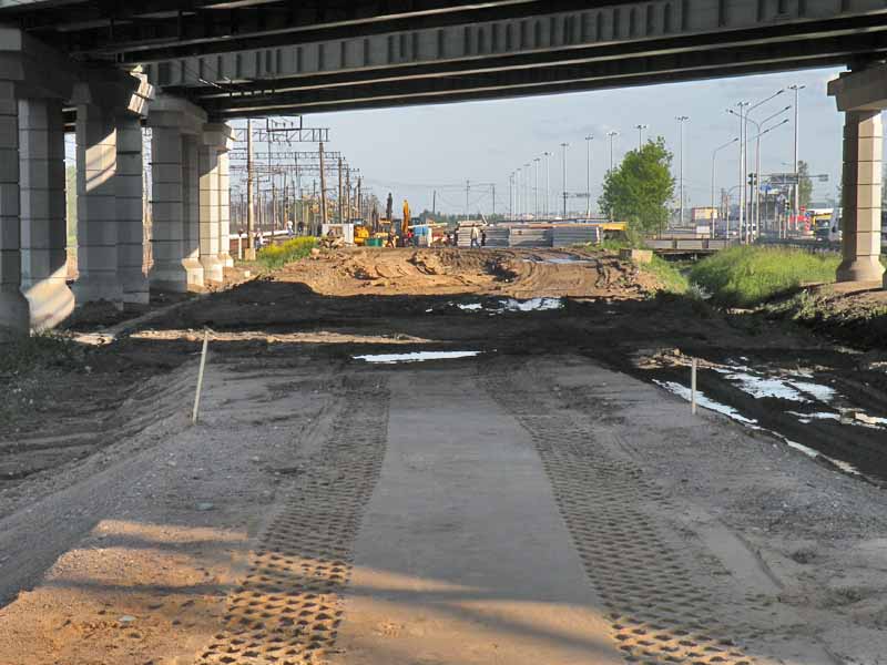 Мы в Купчино, в полосе, смотрим на север. Здесь будет вокзал.