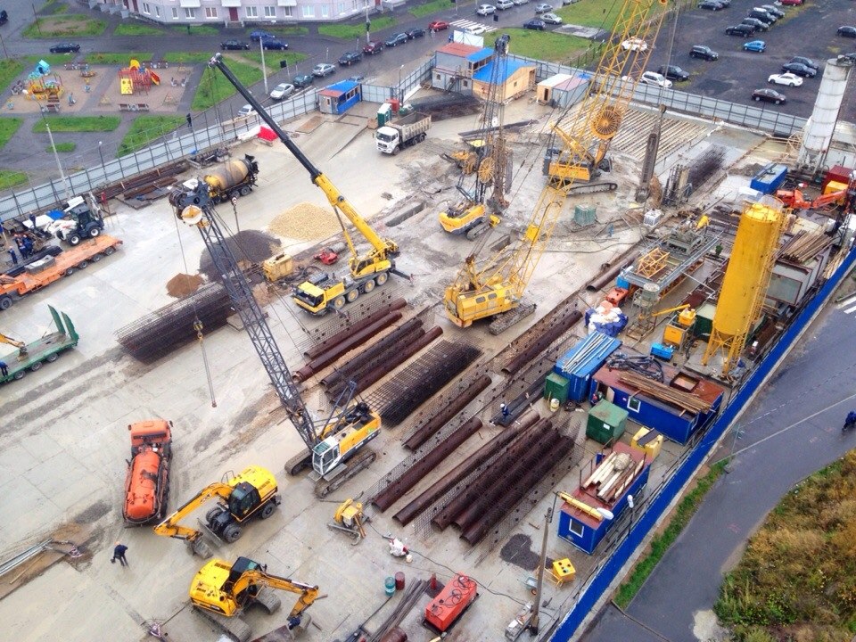 Чистенькая какая площадка. Даже загородки для отвала грунта сделаны. Скорее бы уж начали выбирать котлован, наблюдать интереснее.