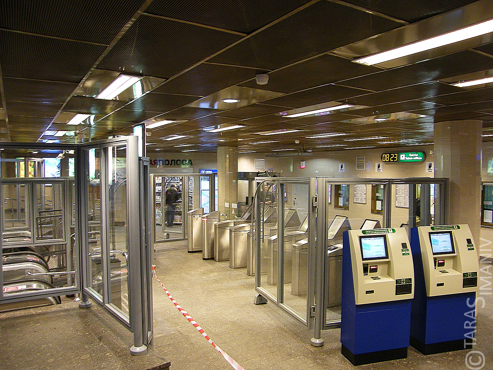 Вестибюль утром работал только на выход, недоумевающие пассажиры пытались пройти сквозь запертые двери входа.