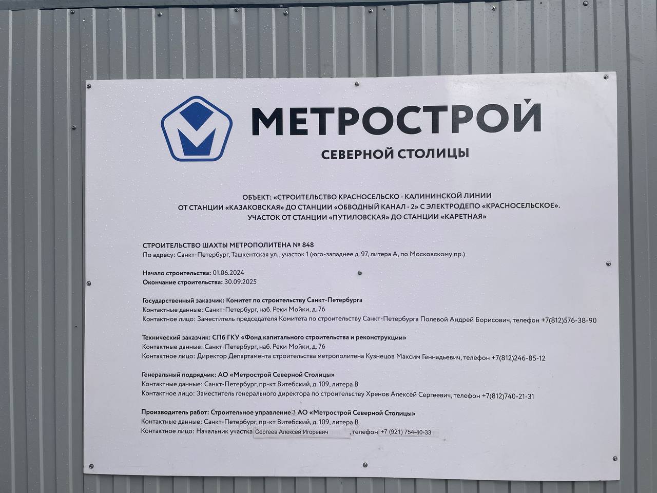 Репортаж со строительной площадки 848-ой шахты метрополитена Санкт-Петербурга.