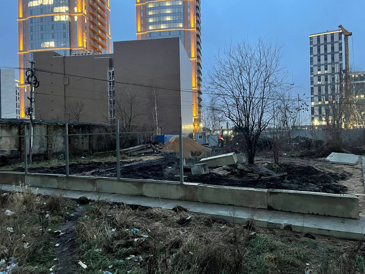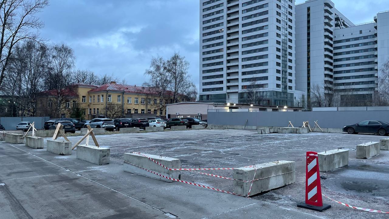 После получения нового ордера ГАТИ строители приступили к освоению новых территорий. На данный момент участок оградили от автомобилей, которые обычно здесь паркуют.