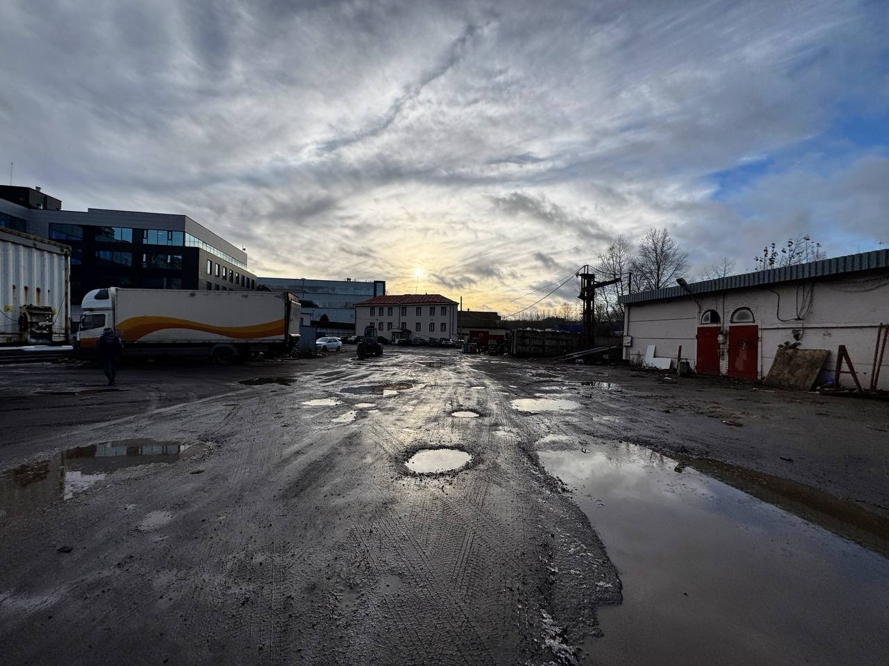 На данный момент земельный участок представляет собой парковочную зону с местом накопления отходов и промышленными постройками по периметру.