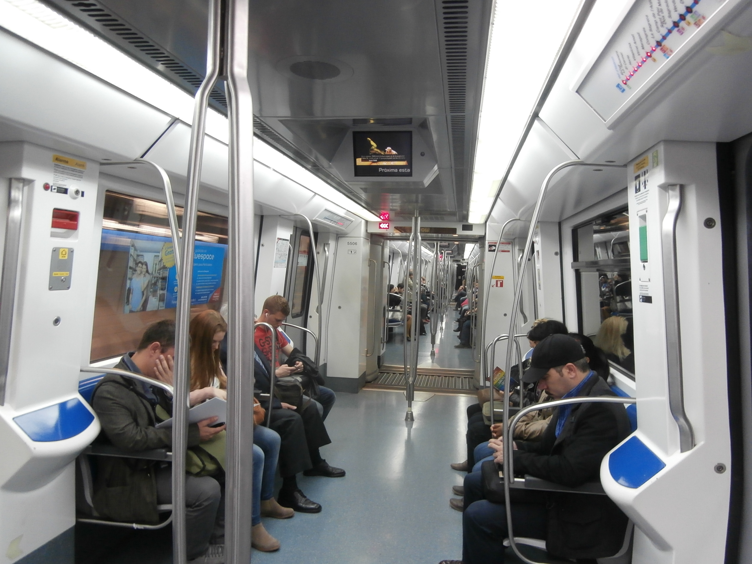 На предпоследней фотографии, в вагоне, это что за конструкции у дверей с синими вставками? Неужели «подпопники», я извиняюсь конечно, для стоящих у дверей пассажиров? :-)