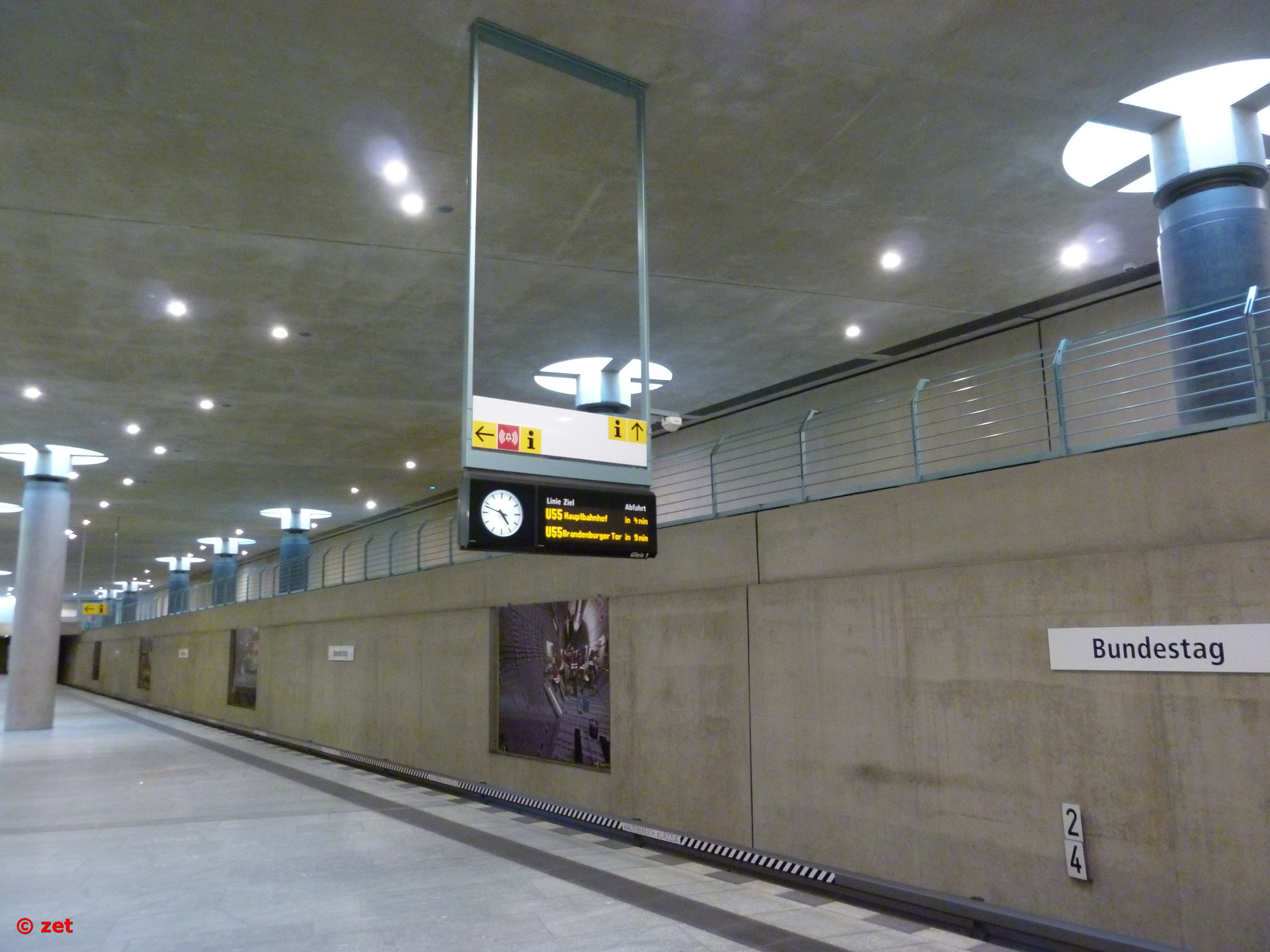 Прибывает метропоезд на платформу станции Bundestag (U55) в сторону станции Berlin Hauptbahnhof (U55)