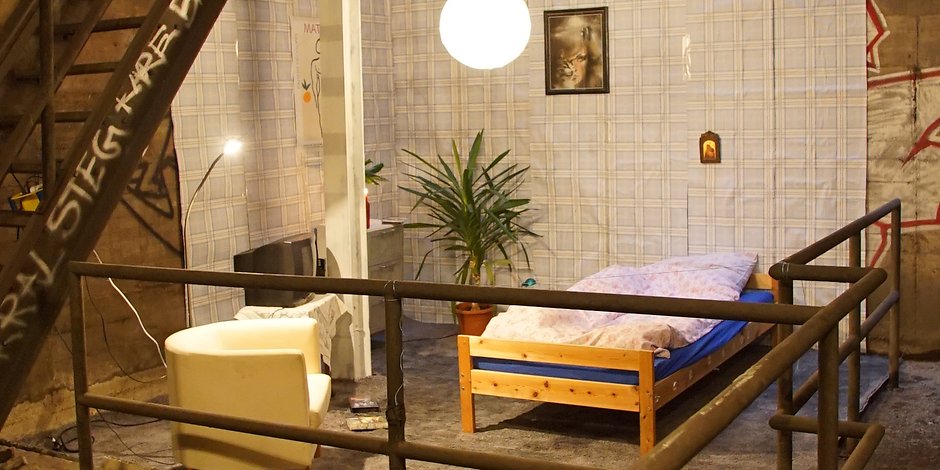 В одном из служебных помещений берлинского метрополитена, примыкающих к перегону Ратуша Штеглиц - Шлосштрасе (юго-запад Берлина, маршрут U9), неделю назад обнаружена пригодная для проживания квартира. Этот участок введен в эксплуатацию в 1974 году и сейчас находится в процессе санации/модернизации (без остановки движения).