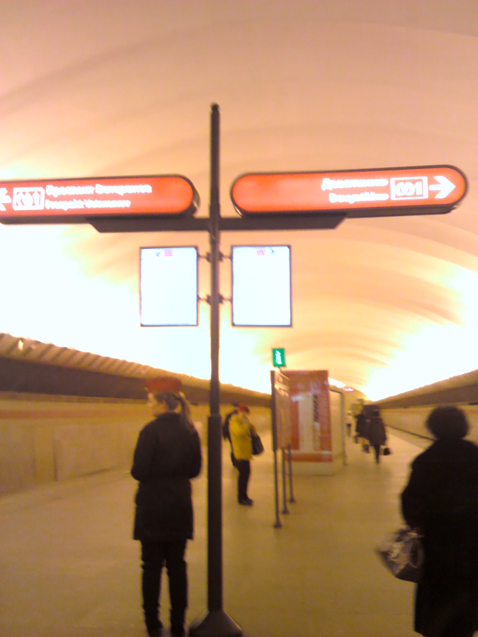 2 полосы достигли конца станции, у перехода к эскалаторам надписей на них ещё нету