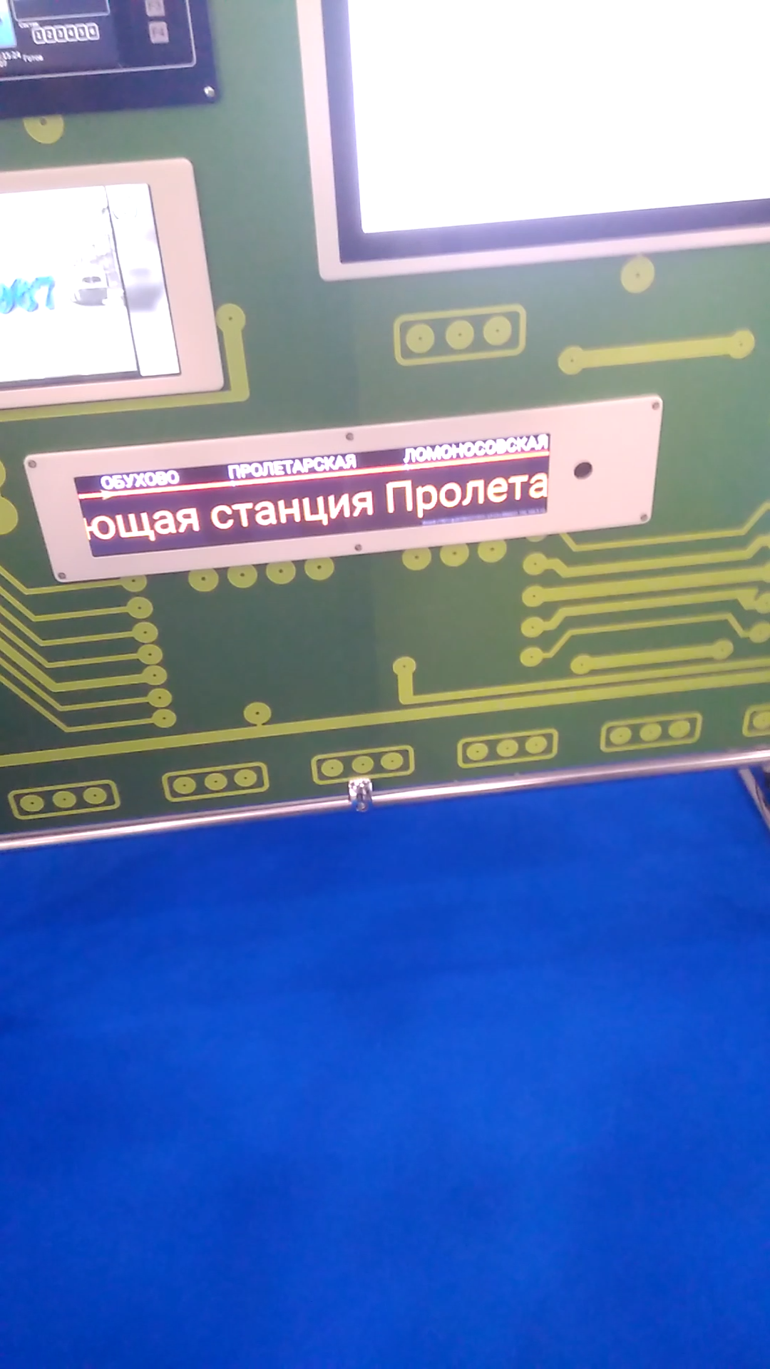 В принципе, "Сармат", который стоит в НеВе и Юбилейном, по своим функциям идентичен. Да, наддверные табло, мягко говоря, устаревшие, но принцип подачи информации тот же.