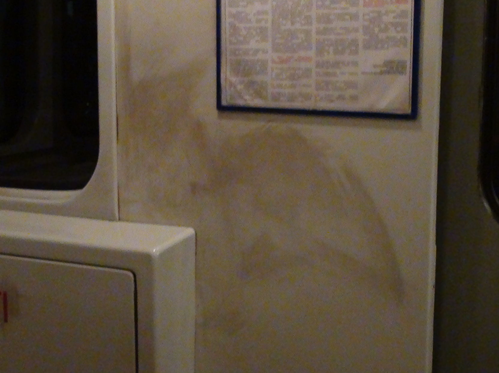 Но если продолжить, то я тоже не раз видел кровавые пластыри на сидениях, а также всякую др. гадость(про пол я молчу, один раз ехал уже к полуночи ближе, у противоположной двери в углу было, извините, собачье г..., пришлось перейти в др. вагон) В общем :bad: Но что вы предлагаете? Я-за большие штрафы и камеры в вагонах , а потом эту пьяную рожу-в новостях на весь экран да на всю страну. Хотя, что камеры, все двери на "горлифтах" обгажены (как только слесари их обслуживают, а что делать- приходится), ощутимо-вонь на той же Ваське,Звездной. Жалко уборщиц. Или - выхода нет?