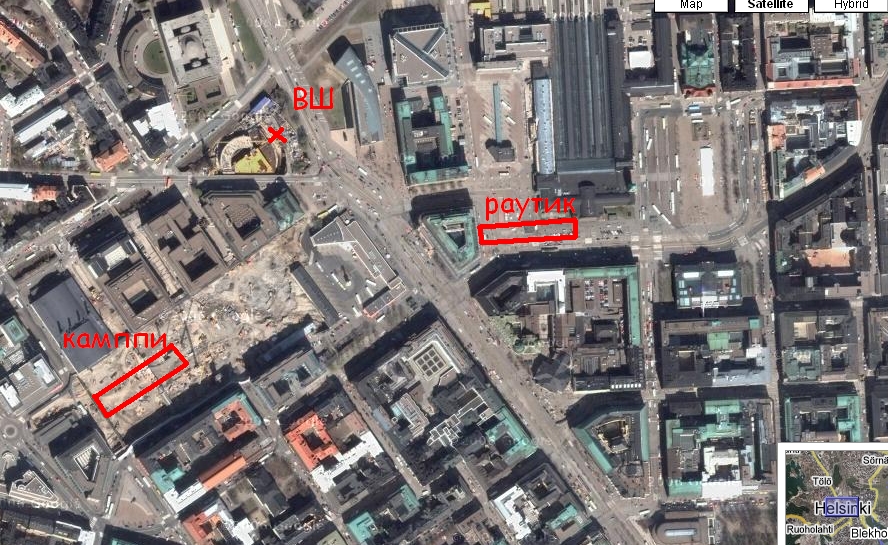 ВШ Камппи - Раутатиентори, м.б. станционная одной из этих станций - там все рядом, а расположение станций под землей я себе пока не представляю:
