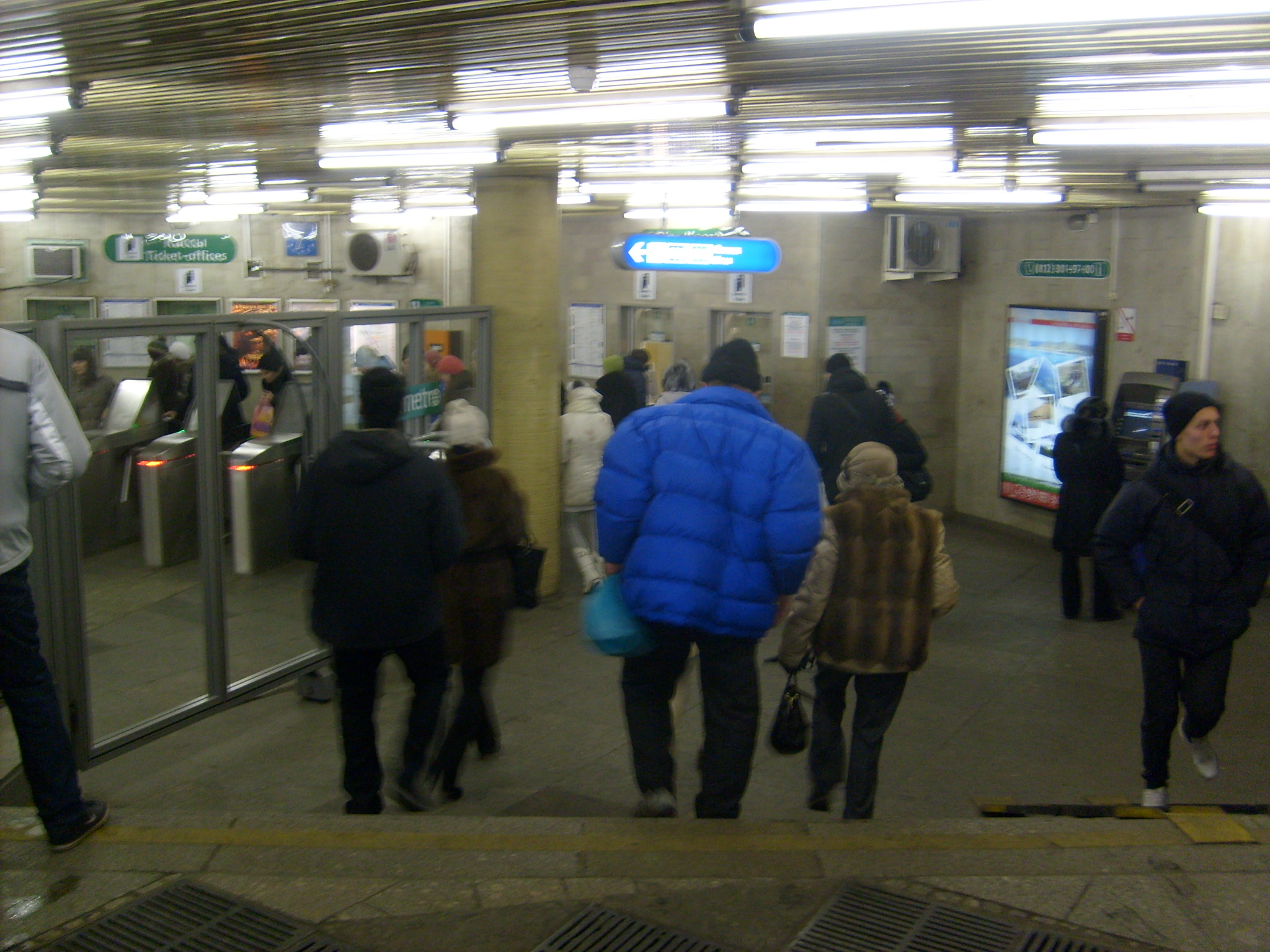 Мне в отремонтированном выходе больше всего не понравились вот эта недоделанная облицовка и сетчатый потолок вестибюля с проглядывающими перекрытиями, коммуникациями и т.п. Ну и также плохо, что не догадались поменять пассажиропотоки и не заменили облицовку перехода - так и остался мрамор, ступенчато переходящий в гранит (или наоборот - смотря откуда смотреть).
