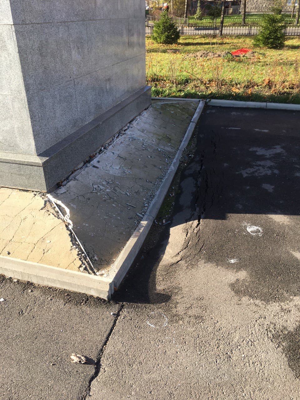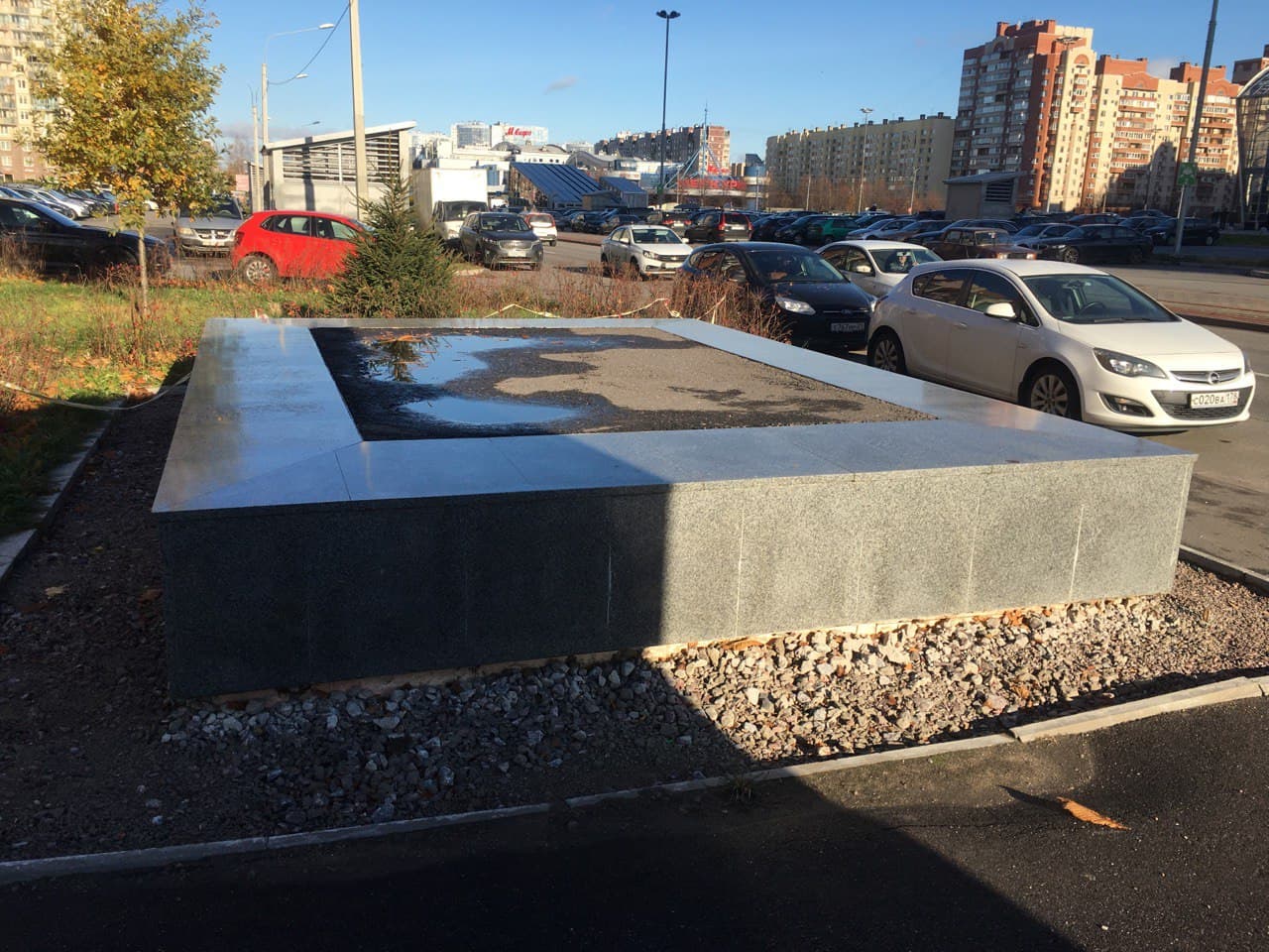 Странный монумент, на гранит хватило сил, на отмостку нет. Зачем так мощно забутовывать технологический проём, вопрос, обычно накрывают плитами и делают клумбу.