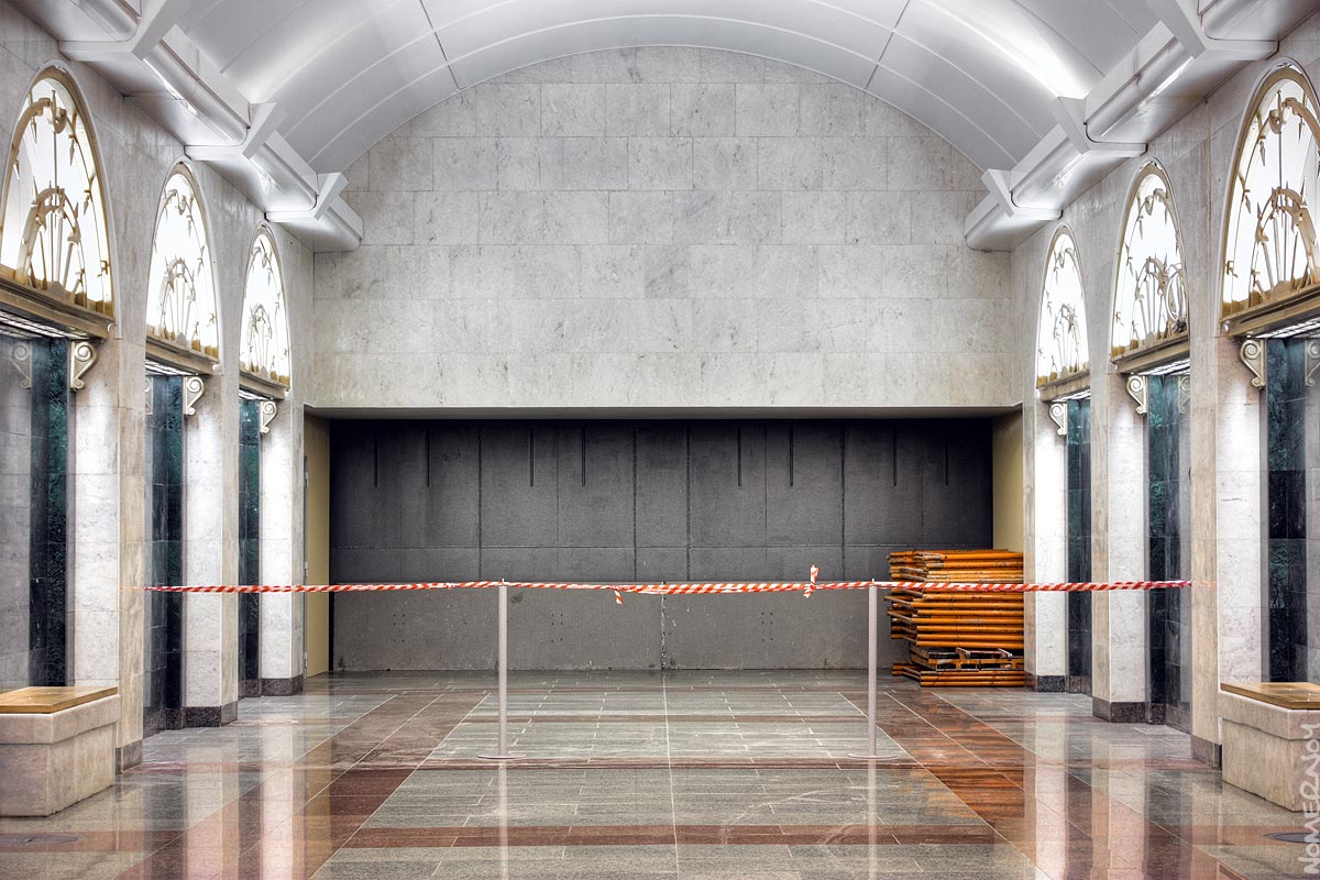 Вестибюль станции: идет подготовка к установке турникетов и огромное количество других работ, все как в муравейнике :) Сфотографировать пытался, чтобы попало в кадр меньше рабочих..