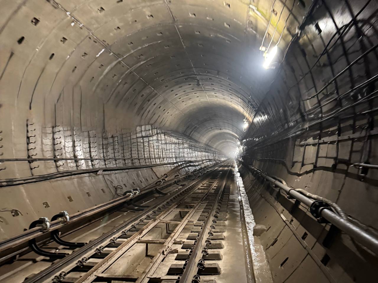 В перегонных тоннелях и группах камер съездов строящегося участка Красносельско-Калининской линии от станции «Юго-Западная» до станции «Путиловская» продолжаются работы по монтажу контактного рельса.