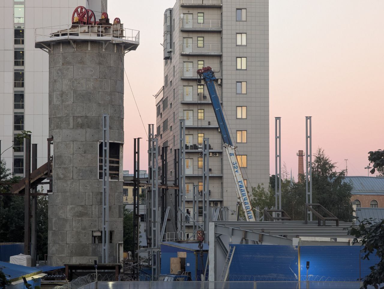 После завершения демонтажа строители приступают к устройству ограждающего контура из буросекущих свай по периметру ствола шахты.