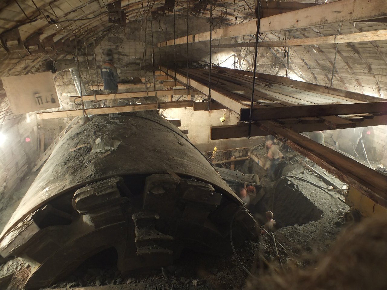 А вообще - хорошо, что порода сухая, плотная. Но с другой стороны - пыльно. Тяжелый труд - щит вручную откапывать...Когда, примерно по срокам, разберут щит и начнут 16 метровую? Понятно, что спешить особо некуда, но...