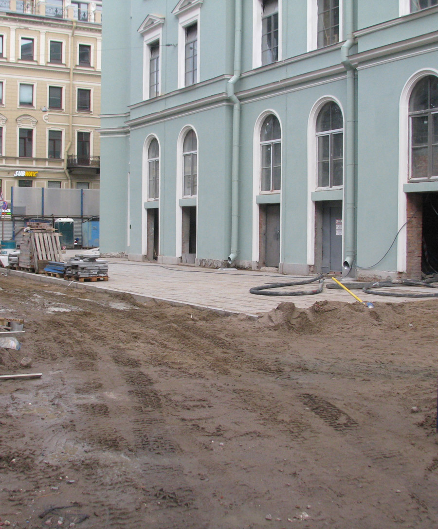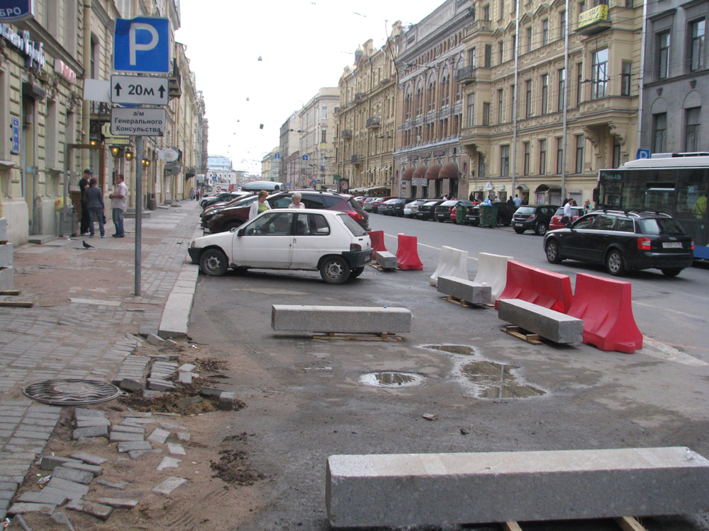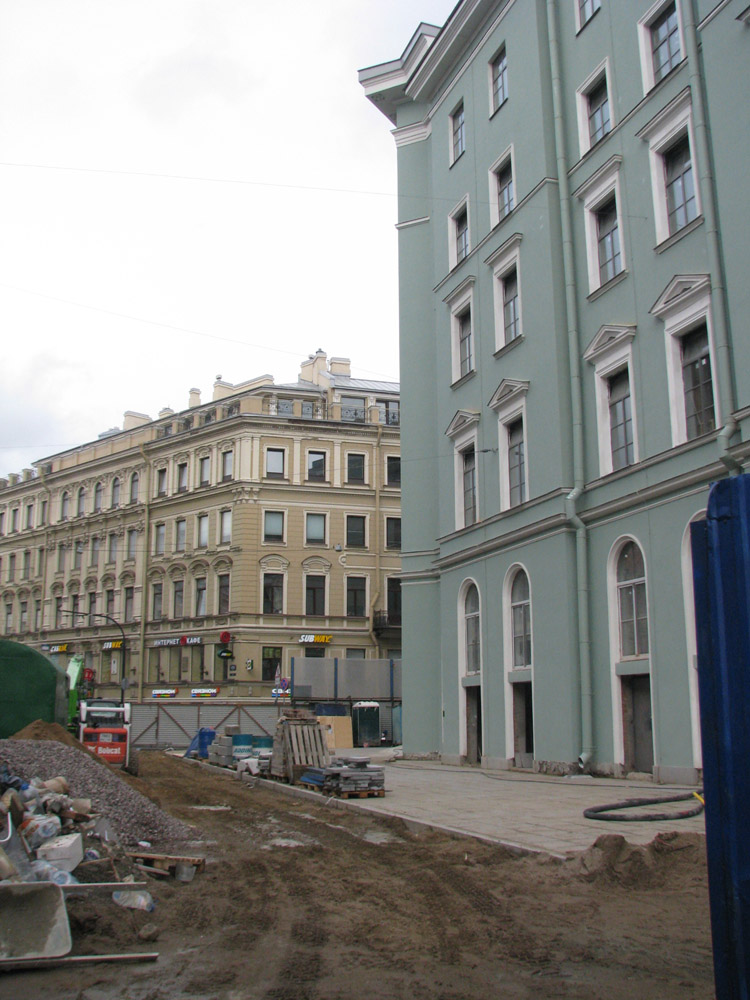 Вид в сторону Гороховой начинается подготовка к восстановлению тротуара.