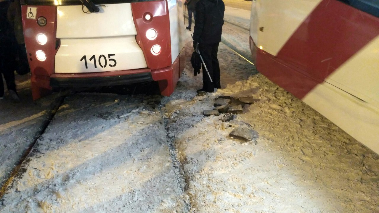 Неудивительно. Почти везде дороги замело так, что трамвайные рельсы не заметны, даже стоя вплотную к ним. А уж если там стрелка с ручным переключателем...