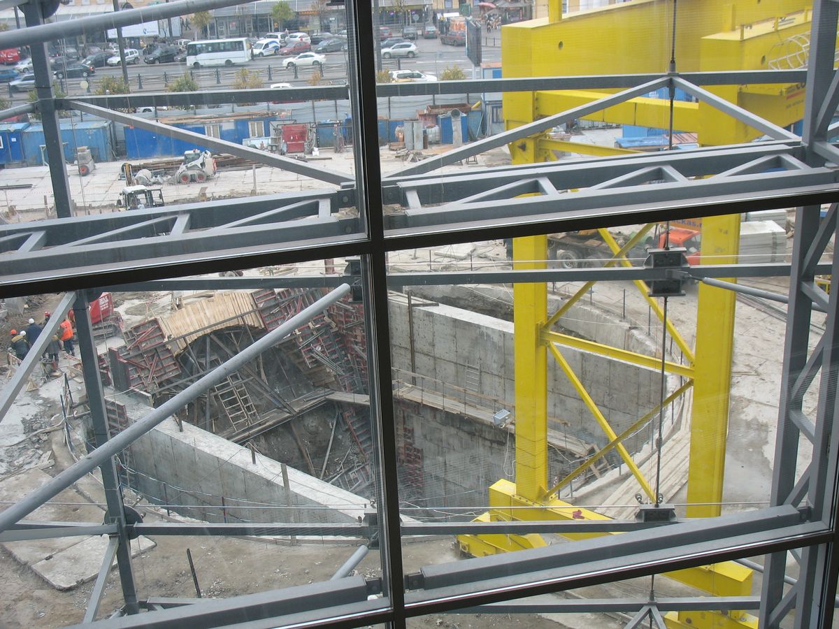 Посмотрел сегодня, что нового на стройплощадке - ведется укладка бетонных плит покрытия, рельсы для крана, насколько мог видеть, полностью уложены, по самому крану - проложили толстые черные кабели, вероятно, для питания лебедок. Когда там ожидается прибытие щита?