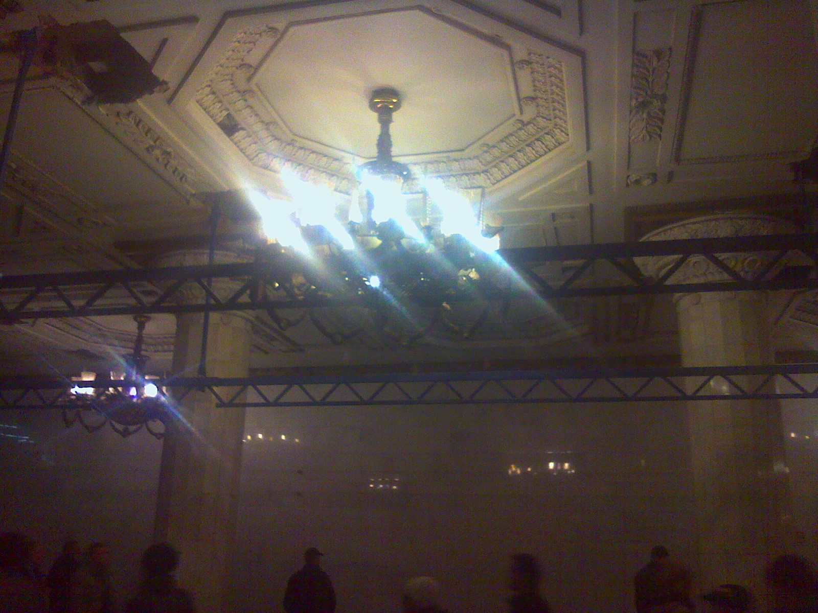 Сегодня утром уже сняли первую люстру от лестницы.