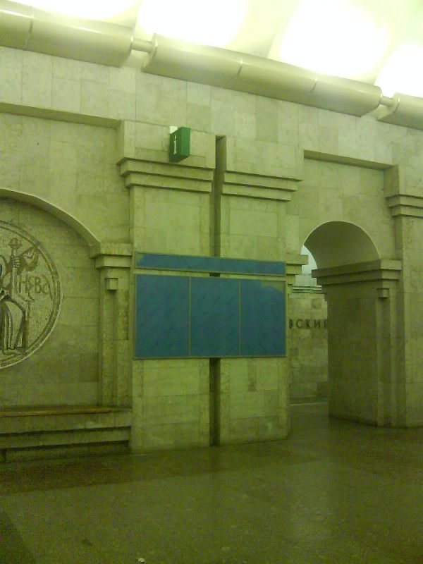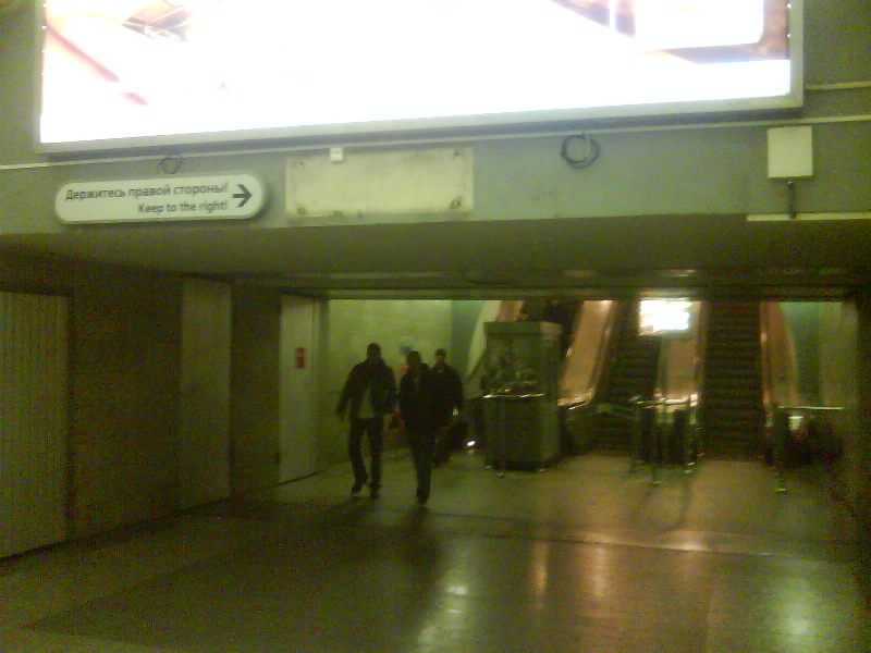 И информационный щит, на мой взгляд, следовало бы разместить или в торце ЦЗ (хотя не знаю - там зеркало), или на простенке у эскалатора, как на Коменде. А вообще нет. На мой взгляд, информационным щитам место исключительно в вестибюле. Сами посудите - кому нужна информация о стоимости карточек, если в ЦЗ касс нет?