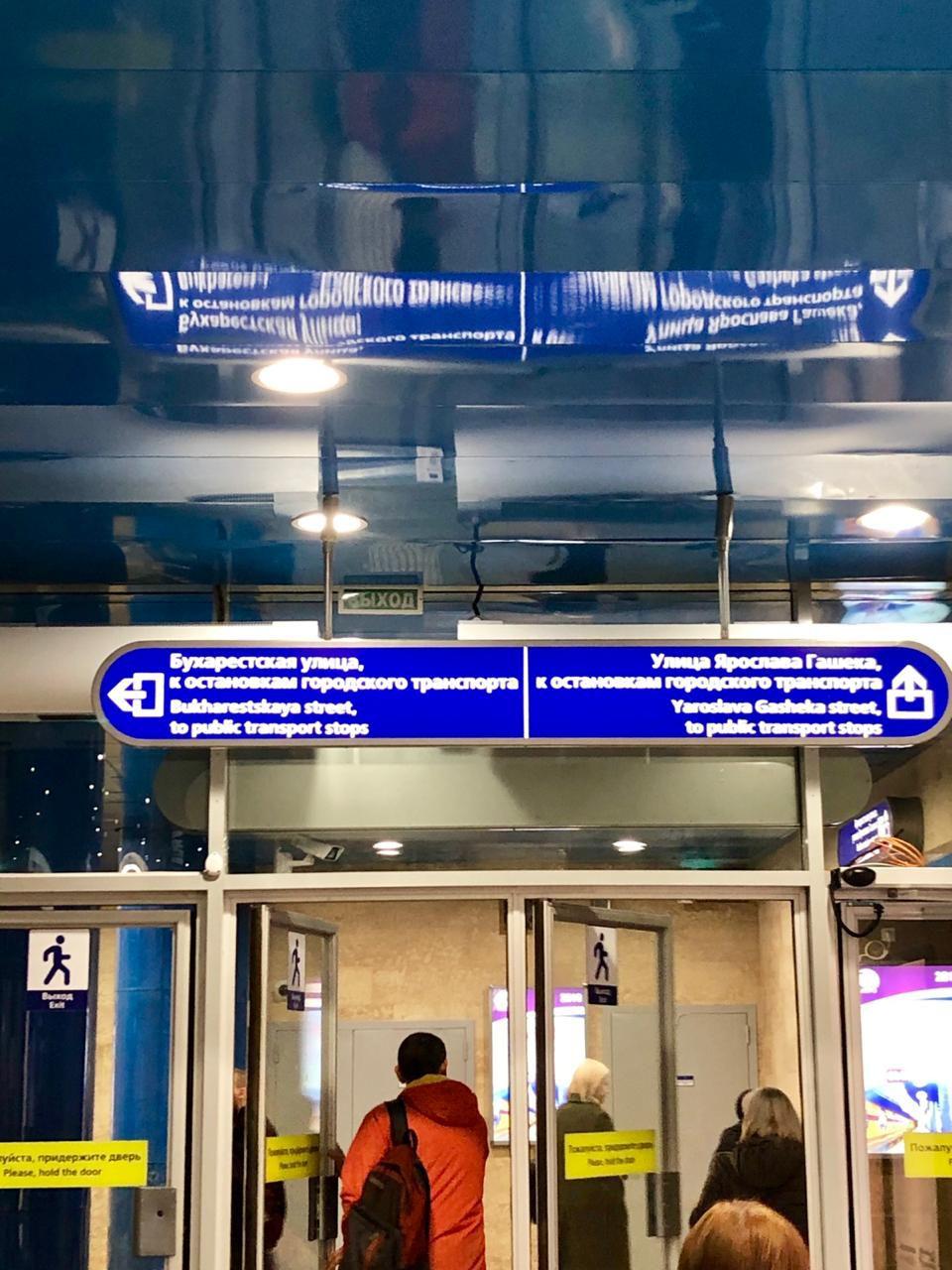 Догадайтесь с двух раз куда вы выйдете, если решите проследовать к выходу на ул. Бухарестская? Правильный ответ на перекресток Бухарестской и Гашека, где действительно есть остановки городского транспорта.