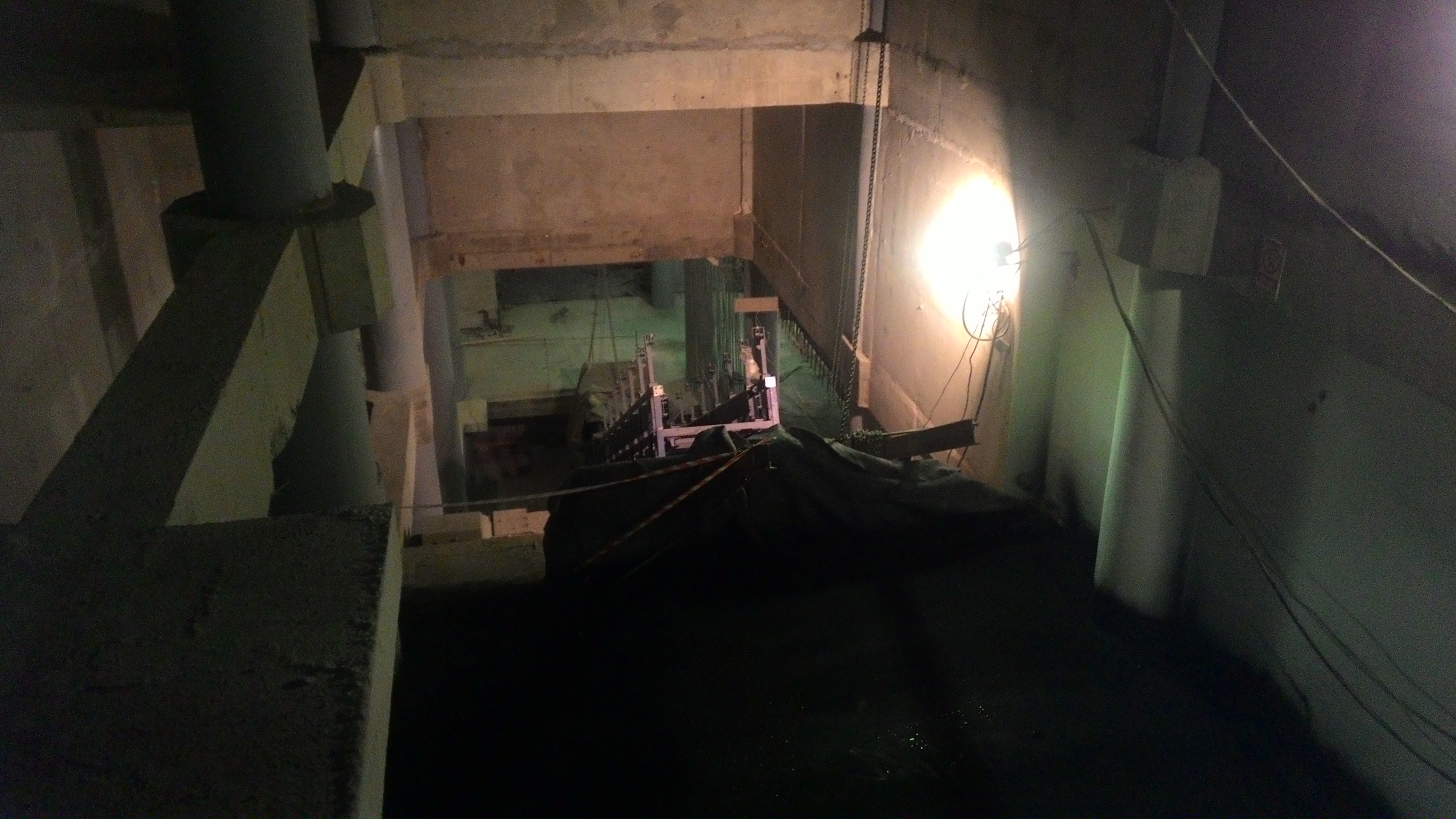 Но непосредственно на примыкании плиты к тоннелю (отметка -2.6) столкнулись с мощным водопроявлением (Андреев включил видеозапись: из-под земли бьет здоровенный фонтан). За этот участок, в прямом смысле, идет война: в ход пущены ускорители схватывания бетона, многокомпонентные химические спецсоставы, полимеры, эластомеры. Сейчас это самая большая проблема на стройке. Поэтому говорить о бетонировании перекрытий, о гидроизоляции, о строительстве каких-либо конструкций на примыкании к тоннелю просто бессмысленно. Задача одна – во что бы то ни стало перекрыть воду.