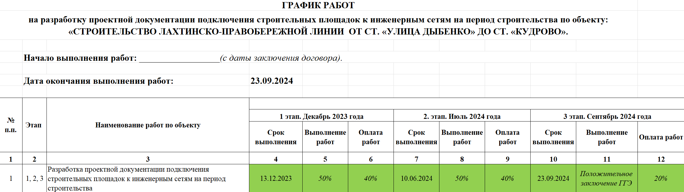 Выполнение работ по разработке проектной документации подключения строительных площадок к инженерным сетям на период строительства по объекту: «СТРОИТЕЛЬСТВО ЛАХТИНСКО-ПРАВОБЕРЕЖНОЙ ЛИНИИ ОТ СТ. «УЛИЦА ДЫБЕНКО» ДО СТ. «КУДРОВО»
