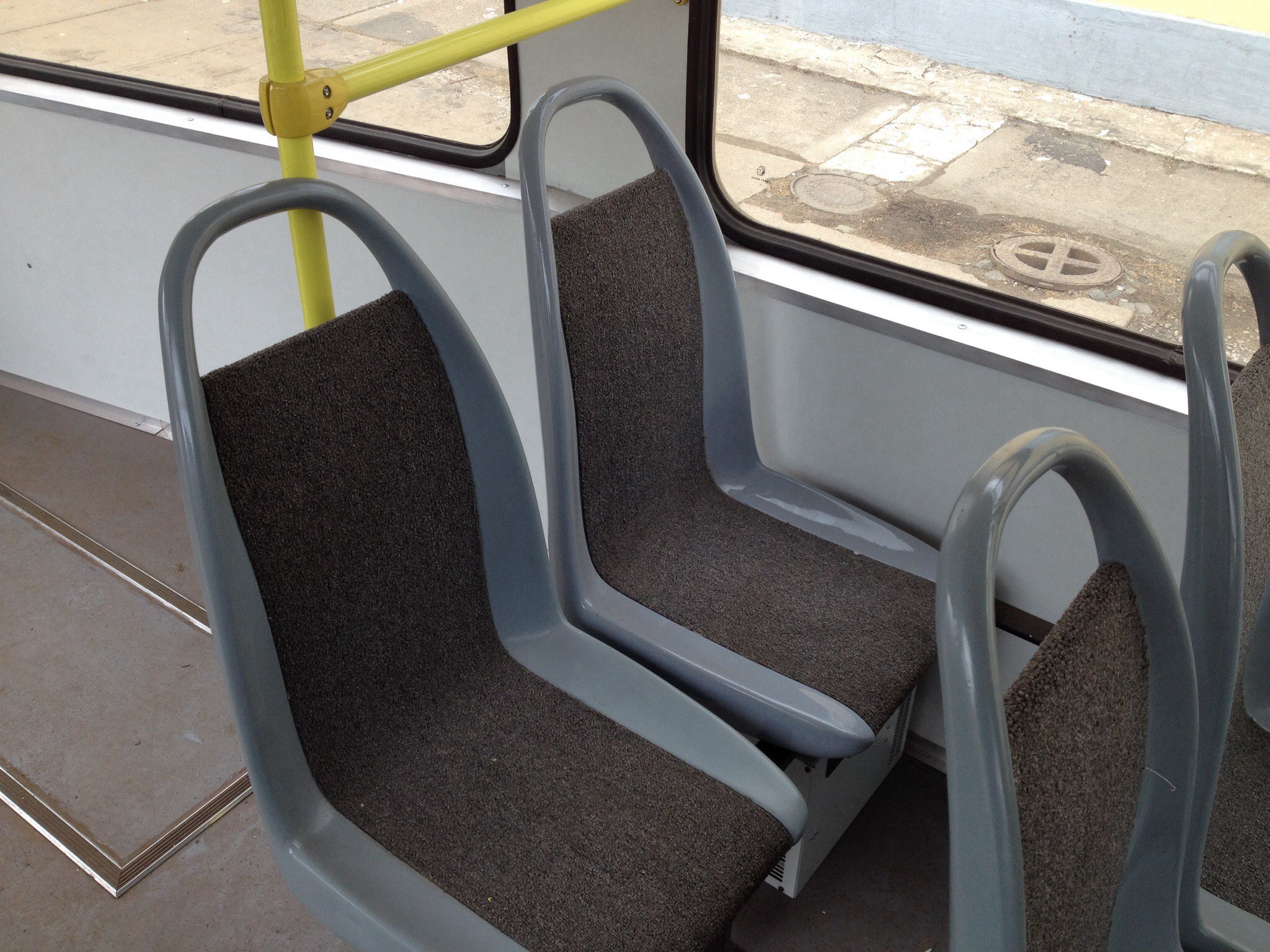 Кстати, вот вам сиденья в пражском 15Т, просто из гнутого дерева - http://transphoto.ru/photo/913693/ или вот более ранний пластиковый вариант - http://transphoto.ru/photo/999303/ так что нашим есть куда стремиться.