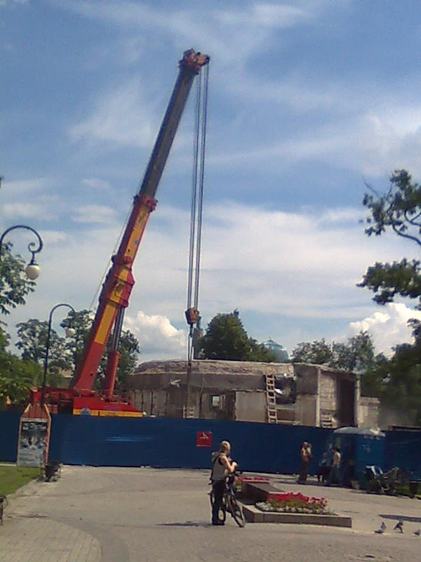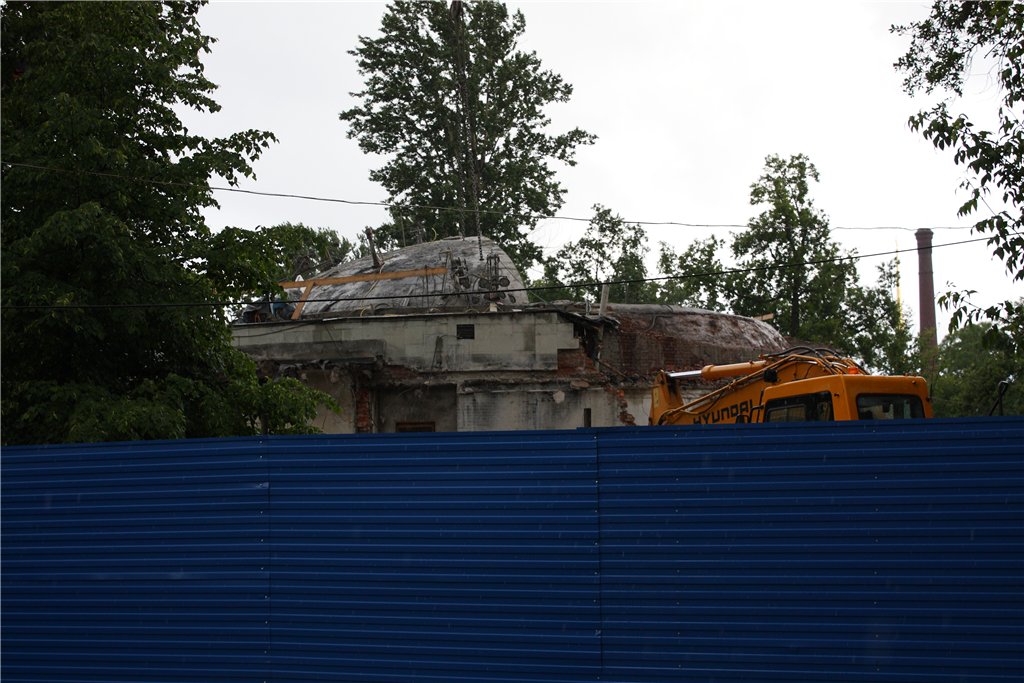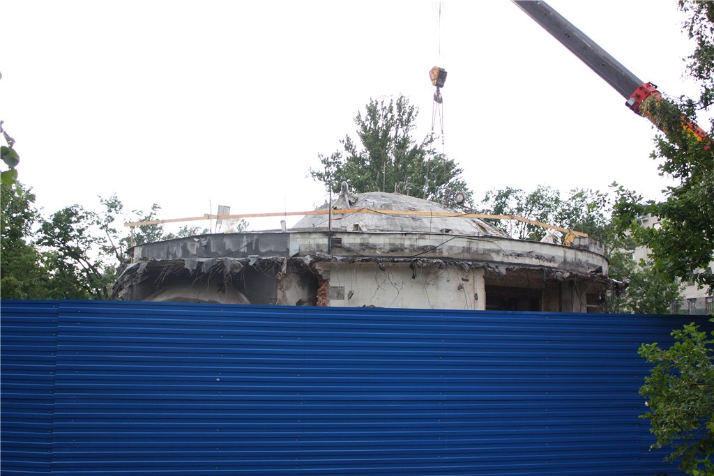 Осталась примерно треть купола. Сегодня начали сносить наружные стены со стороны НХ.