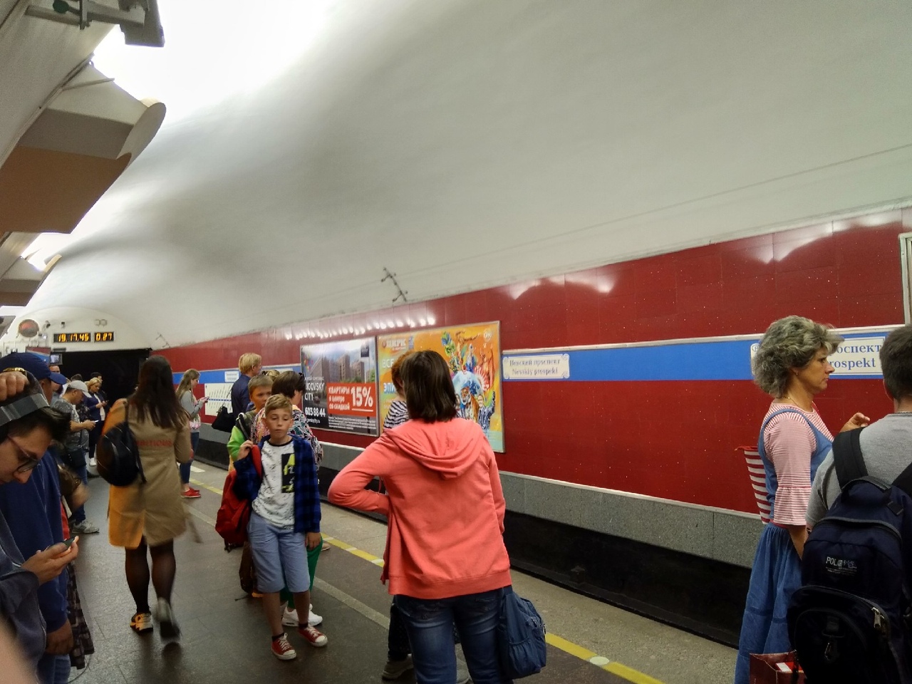 Станция метро «Невский проспект» в Петербурге оказалась обесточенной утром 19 июня. Фотографии толпы людей на тёмной платформе опубликовали очевидцы в соцсетях.