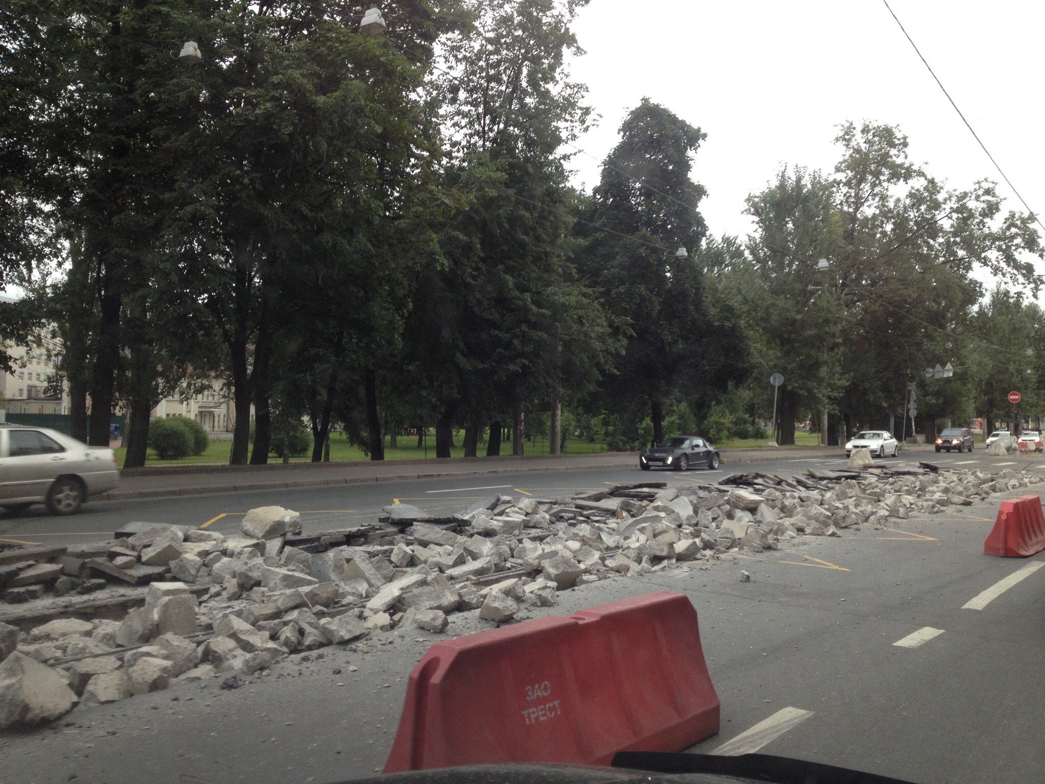 На проспекте Обуховской Обороны (у метро Пролетарская) выдирают из бетона рельсы. Не прошло и года с момента укладки: