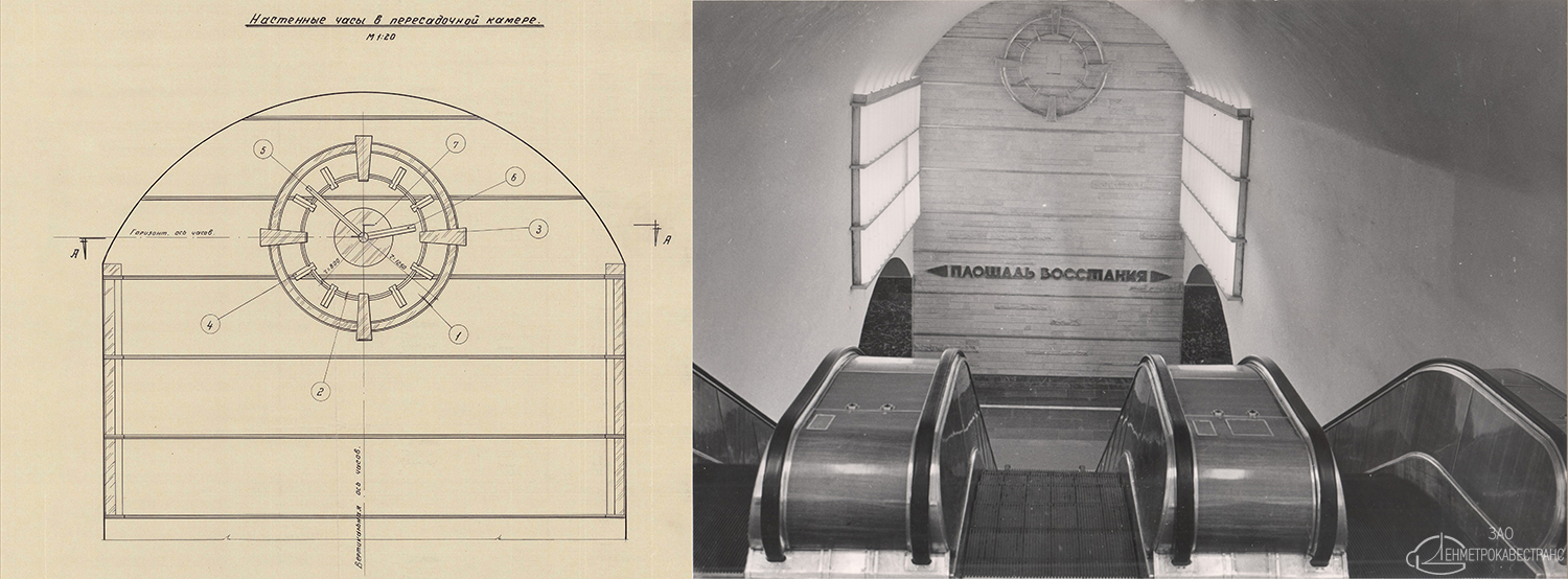 "Стена напротив эскалаторного наклона отделана мрамором. На ней висел текст указа Президиума Верховного совета СССР о присвоении метрополитену имени В. И. Ленина.