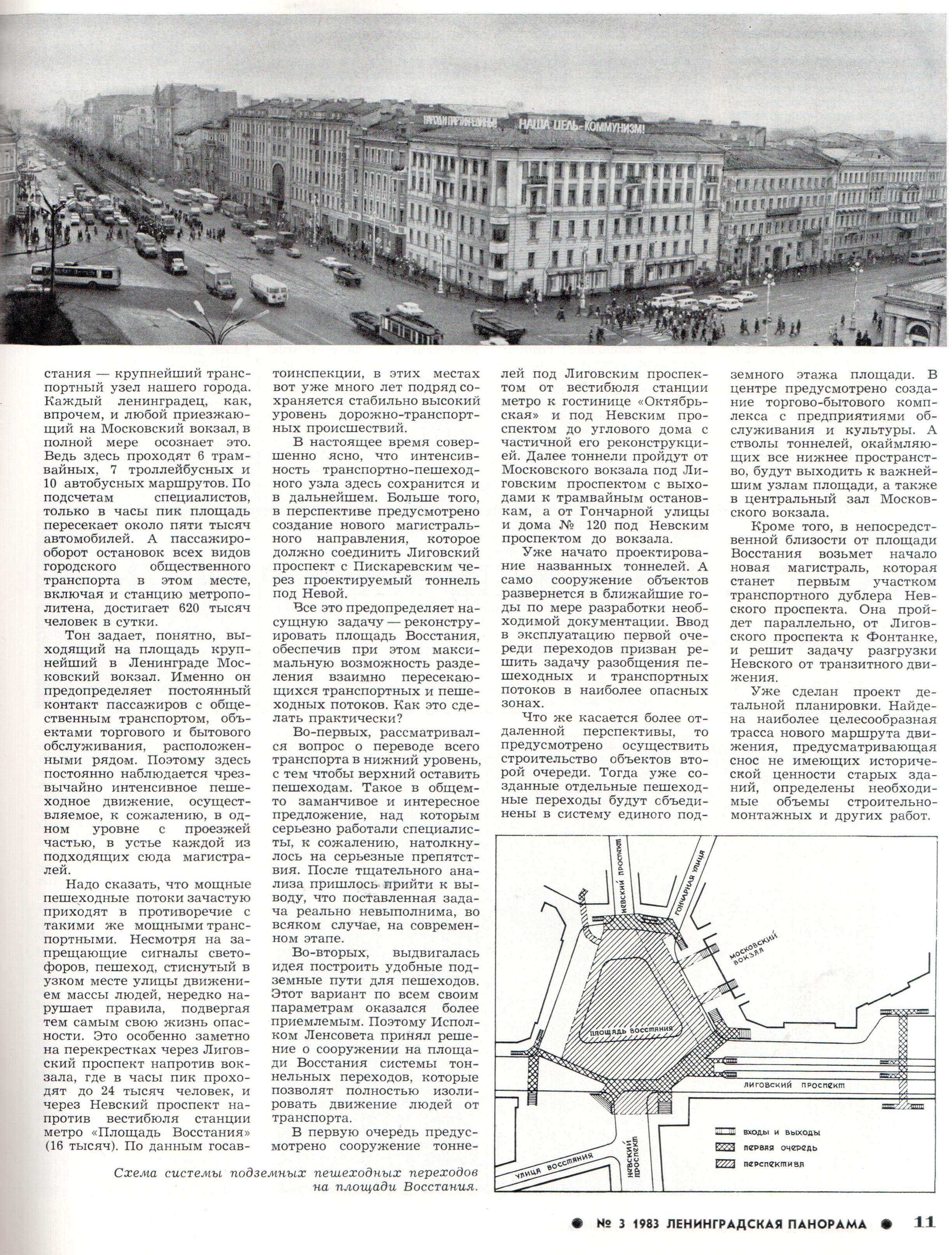 Очень интересная идея связать Лиговский с Пискаревским! Тоннель, правда, получился бы довольно длинным (3 км), но весьма сильно облегчил бы жизнь. А что касается проекта подземных переходов, то не хватает только одного - через Невский к вестибюлю "Площадь Восстания - 1". В остальном все очень продумано. Эх, умели же раньше проектировать! Не то что сейчас - хаотично и беспорядочно. метаясь между пятью вариантами и в итоге реализовывая самый дешевый.